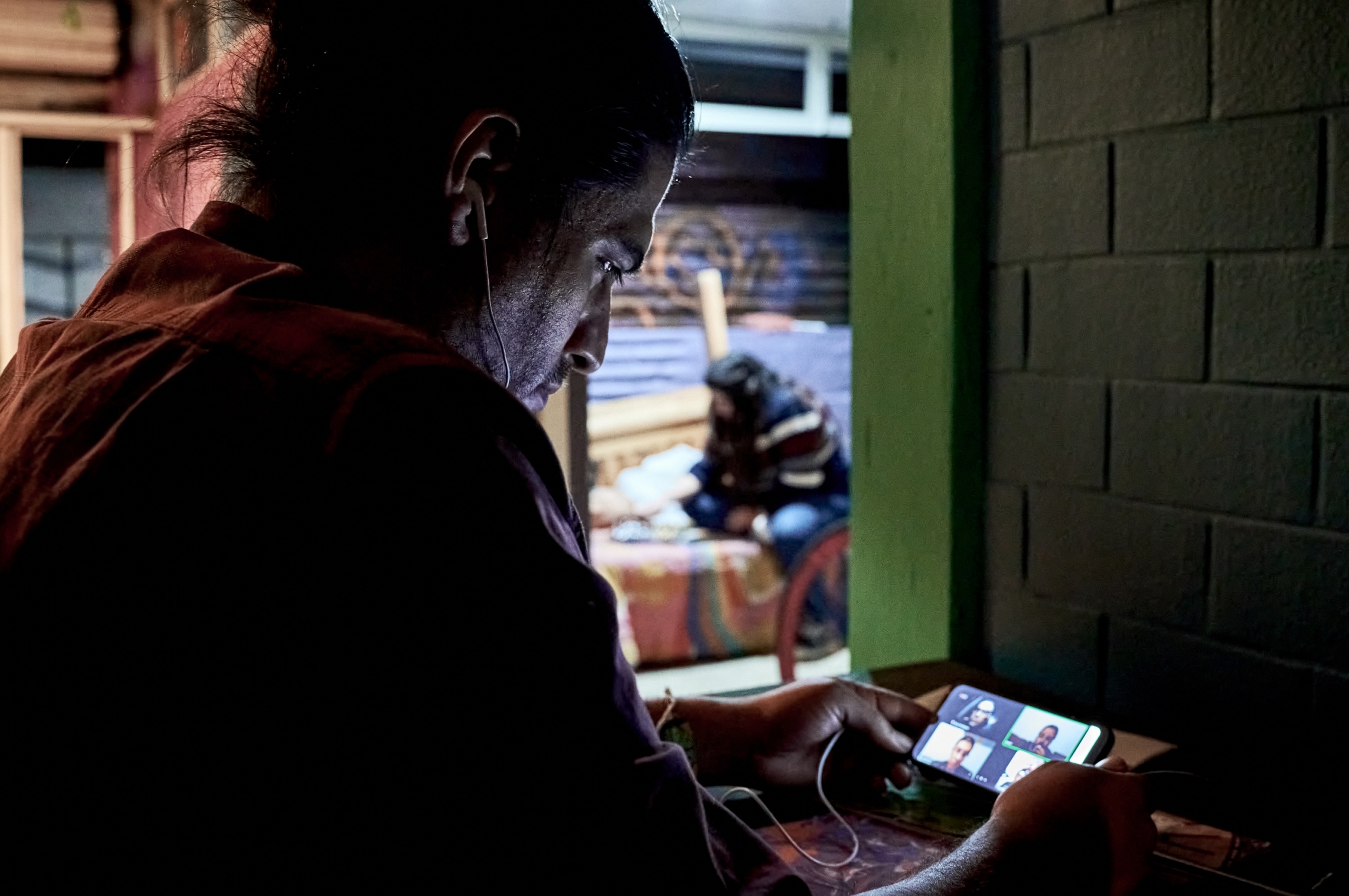 Réunion de l’association « Hombres por la equidad ». Cette association met à disposition gratuitement un groupe de parole pour les hommes violents. Deux fois par semaine, les hommes se retrouvent par vidéo conférence pour parler de leurs excès d’agressivité. Accompagnés par un psychologue, ces derniers apprennent à canaliser leur colère afin d’éviter les violences domestiques. Mexico, 09 Décembre 2020 © Mahé Elipe