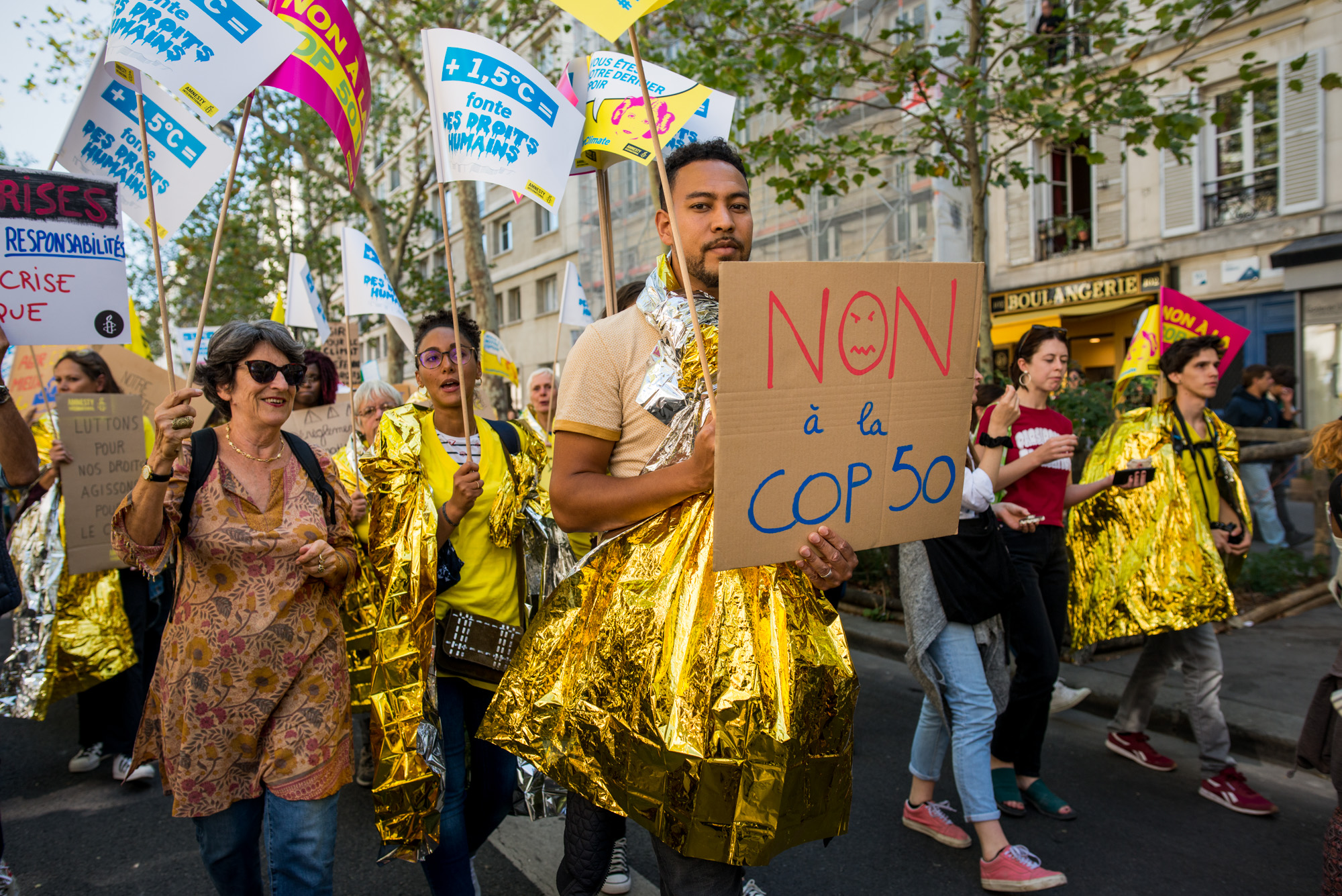 Nous étions également présents à la marche pour le climat samedi 21. Mais nous avons regretté que la marche n’ait pas pu se dérouler dans de bonnes conditions. Nous avons pu constater que les forces de l’ordre ont eu recours à des tirs intensifs de gaz lacrymogène sur une foule très largement composée de manifestants pacifiques, y compris des enfants et des personnes âgées.