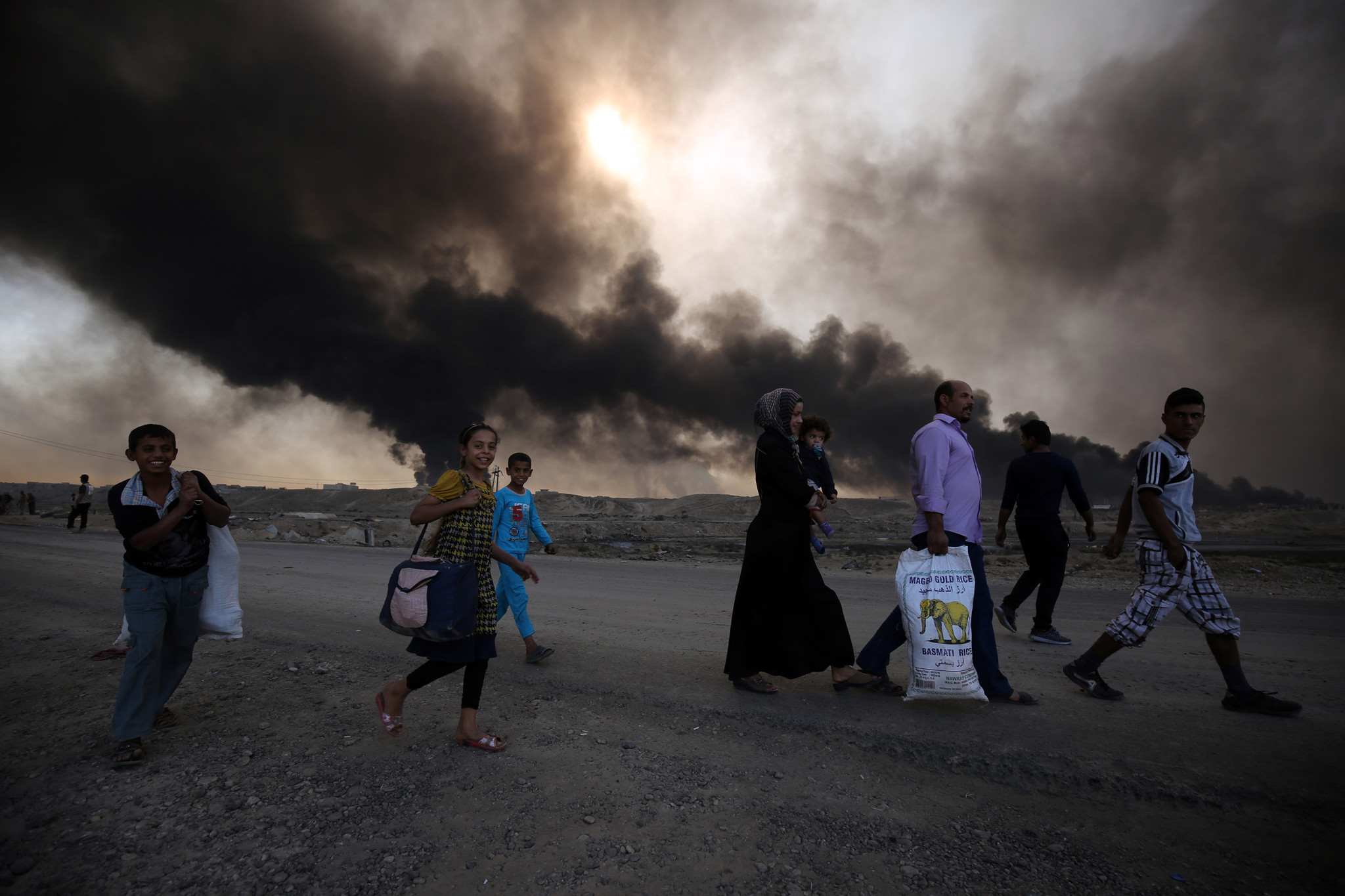 Personnes fuyant Hamam al-Alil à 14 kilométres au sud de Mossoul en novembre 2016 © AHMAD AL-RUBAYE/AFP/Getty Images