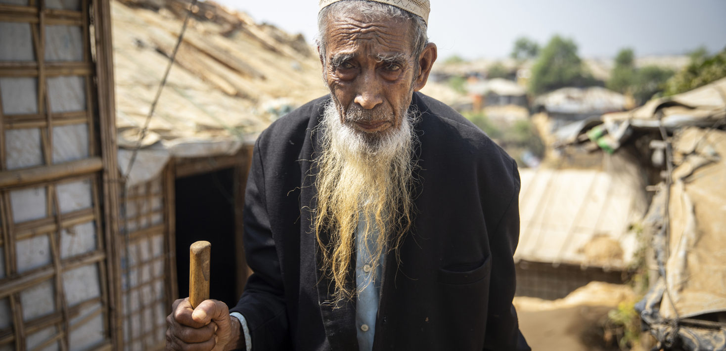 Dans les camps de réfugiés au Bangladesh, un grand nombre de femmes et d’hommes rohingyas âgés n’ont pas la possibilité d’avoir régulièrement accès aux services les plus essentiels, notamment à des installations sanitaires, des soins médicaux, l’eau et la nourriture. L’encombrement des camps et le terrain accidenté représentent une difficulté supplémentaire, en particulier pour les personnes âgées à mobilité réduite.