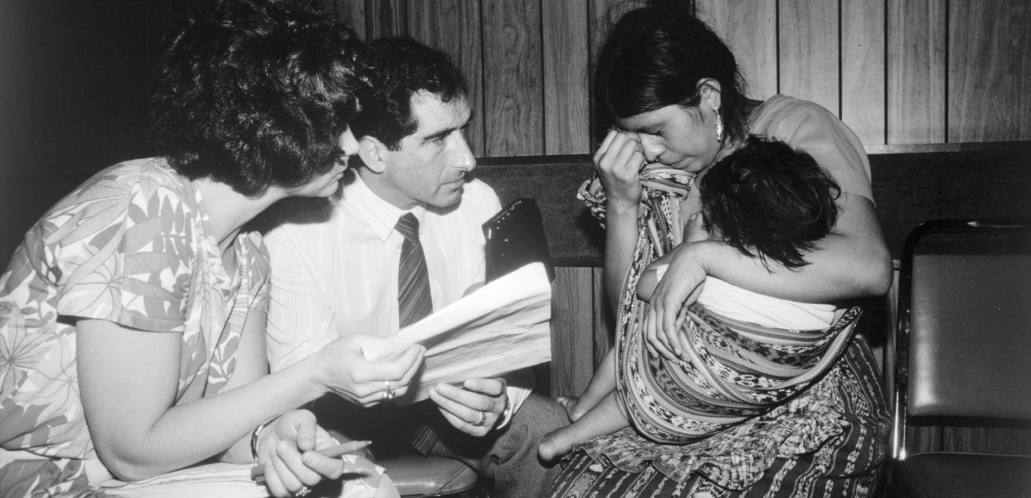 Les délégués d’Amnesty ont également recueilli des informations auprès des survivants d’un village dans lequel on avait signalé des massacres, et ce malgré les machettes brandies par la patrouille civile locale pour intimer les délégués à ne pas pénétrer dans le village. La délégation a également invité d’autres survivants ainsi que des témoins à venir dans l’hôtel où elle séjournait pour raconter leur histoire ; d’après ce qu’on leur a dit, c’était la première fois que des natifs entraient dans l’hôtel. C’est lors d’un de ces entretiens que la photographie qui accompagne cet article a été prise. Les survivants ont bien vu la préoccupation, la bienveillance et la compassion de Nigel à leur égard, et cela a largement contribué à nouer une relation qui a permis à Amnesty de rassembler des témoignages précieux des violations qu’ils ont subies et dont ils ont été les témoins. Ces informations ont été intégrées à des rapports et autres documents d’Amnesty pour générer du matériel d’action internationale pour remédier aux atrocités commises au Guatemala en violation des droits humains.