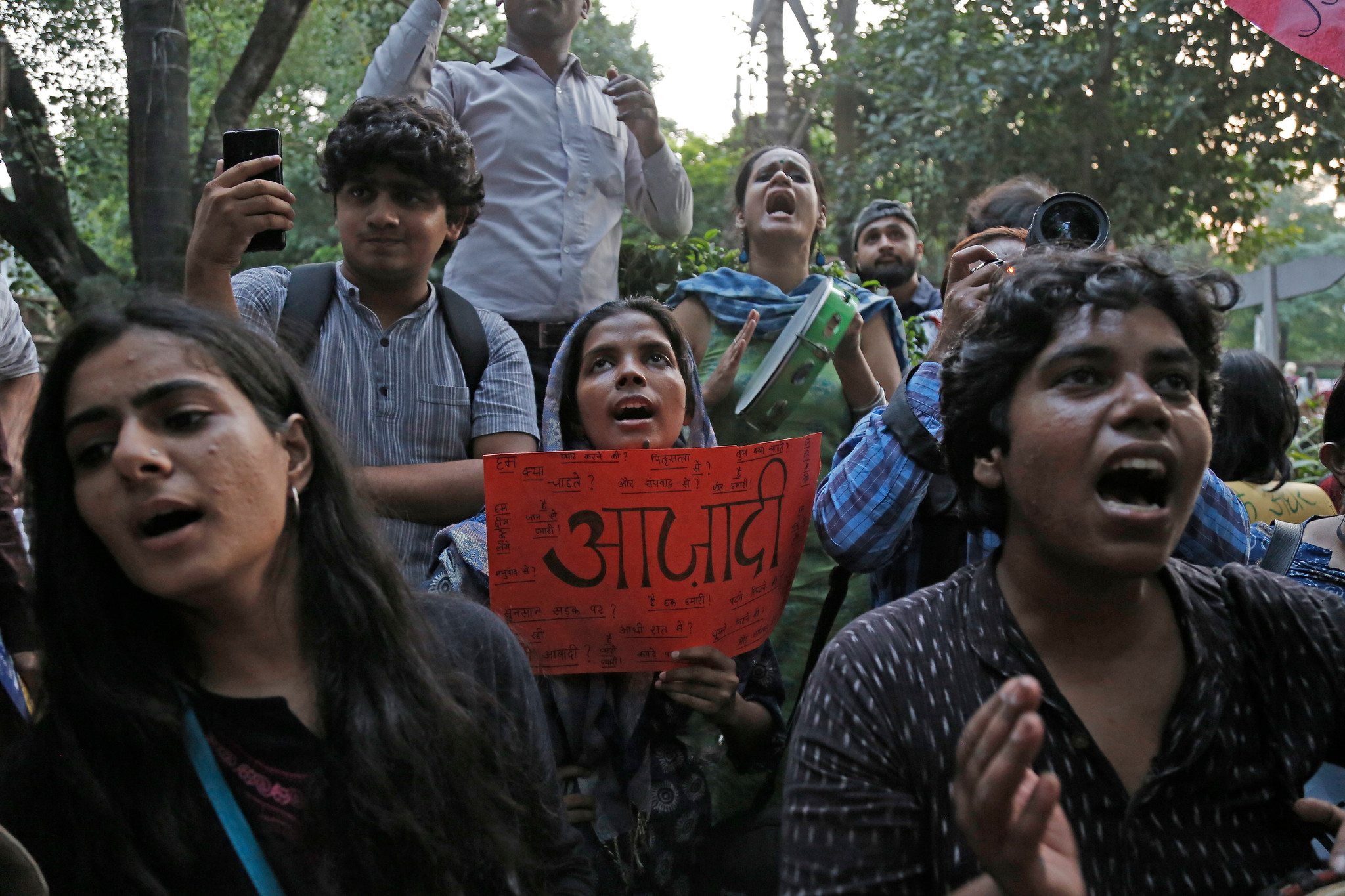 Des étudiants de l’Université de Delhi manifestent contre le traitement discrminatoire des femmes dans les auberges de jeunesse, octobre 2018. © 2018 Hindustan Times