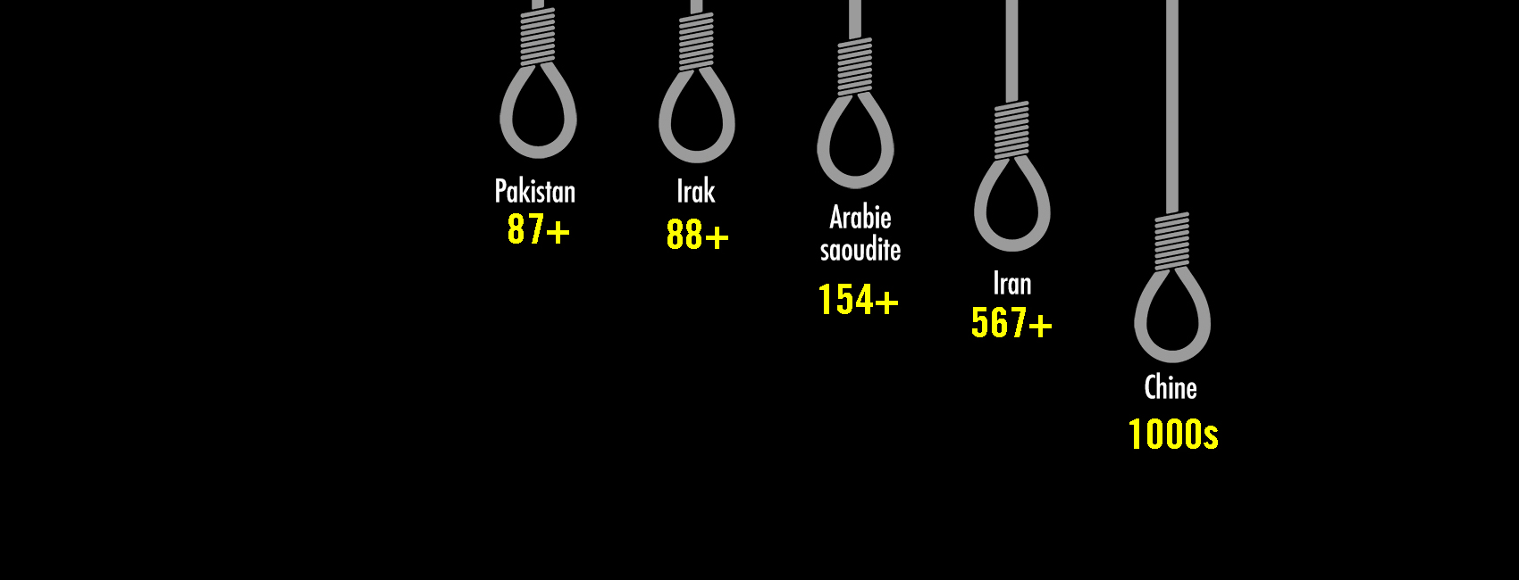 D’après nos recherches, les chiffres relatifs à la peine de mort relevés à travers le monde montrent qu’en 2016 les États ont globalement moins recouru à ce châtiment. Le nombre total d’exécutions, 1 032 personnes dans 23 pays (sans compter la Chine), a diminué par rapport à 2015, où le nombre d’exécutions enregistrées sur une seule année était le plus élevé depuis 1989. Les méthodes d’exécution vont de la pendaison, à l’injection létale, du peloton d’exécution à la décapitation. Les délits passibles de la peine de mort varient d’un pays à l’autre. Ils vont de l’orientation sexuelle au trafic de drogue en passant par les crimes de droit commun. Certains États exécutent, sans aucune considération, des personnes qui étaient mineures au moment des faits ou des malades mentaux.