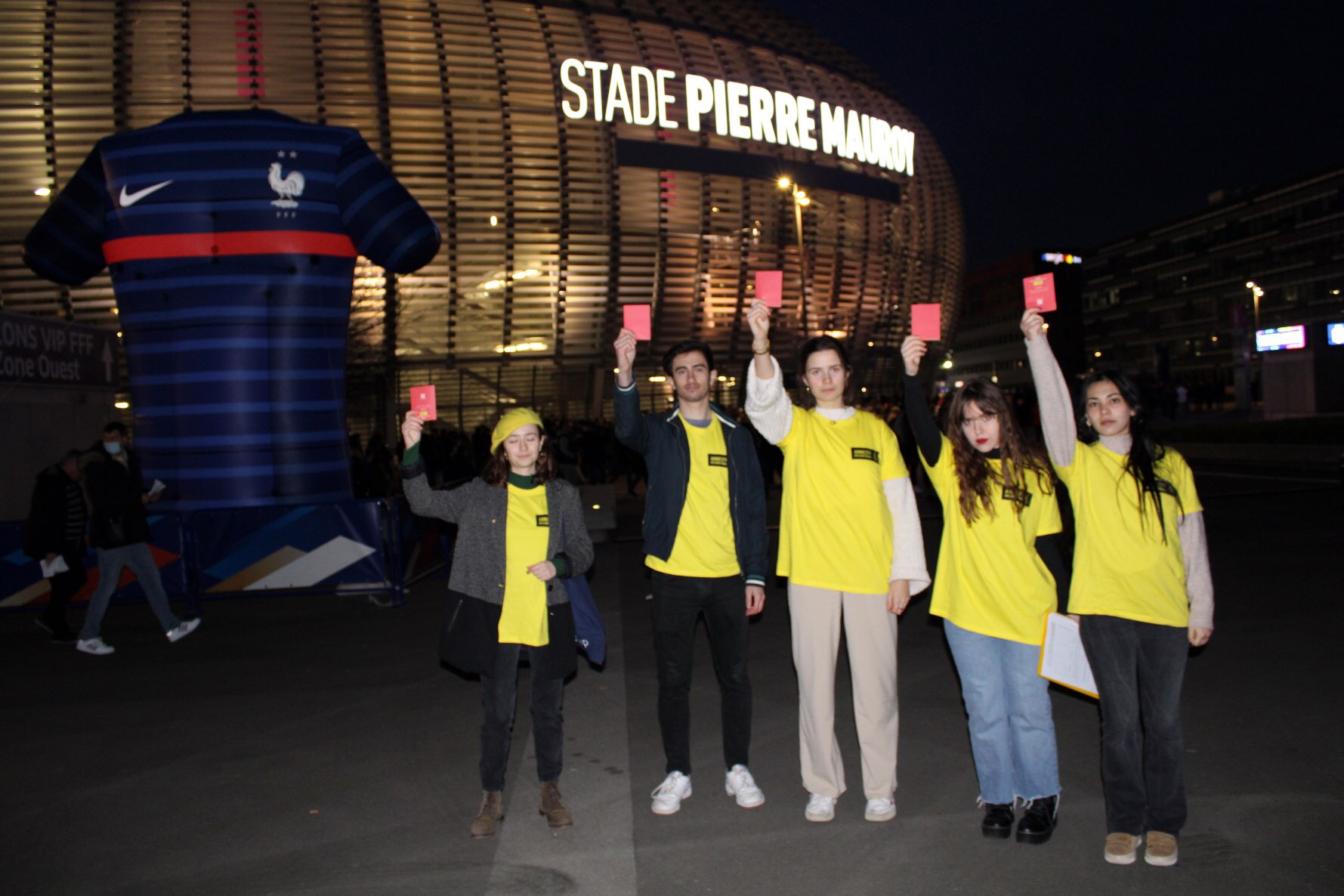 Jusqu’à la Coupe du Monde, partout en France, nos militantes et militants ont organisé de nombreuses actions sur le terrain à l’occasion de différents matchs. Le but ? Interpeller les acteurs (sportifs, politiques, médiatiques) qui peuvent faire pression sur les organisateurs de la Coupe du monde et faire part de leurs revendications au plus haut niveau des instances footballistiques.