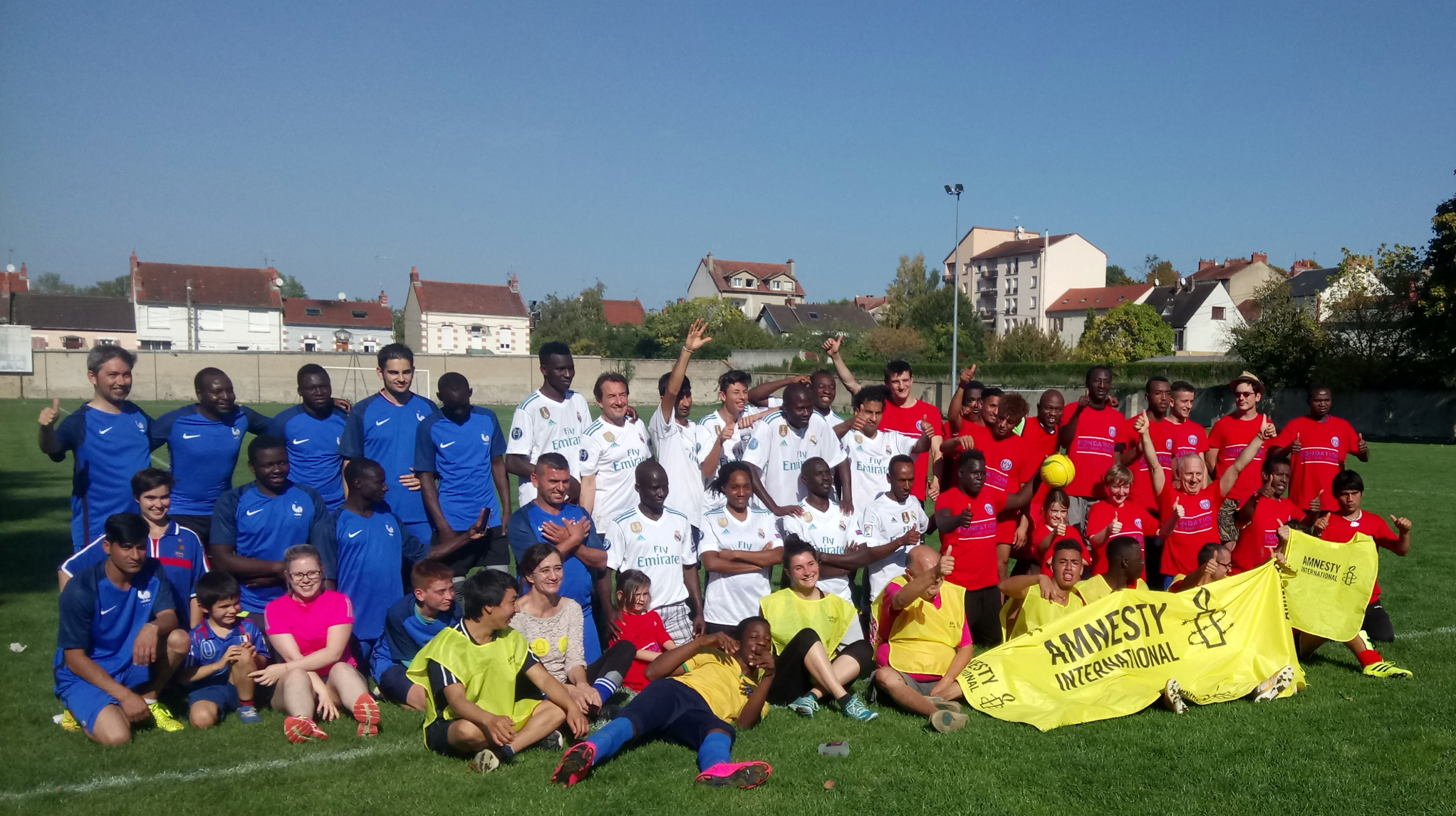 Ces deux semaines militantes se finissent sur un tournoi de foot avec des équipes mêlant réfugiés, non-réfugiés, garçons, filles, jeunes, moins jeunes. Les t-shirts d’Amnesty servent de maillots pendant le match. Des enfants isolés rencontrés dans les lycées participent même aux matchs.