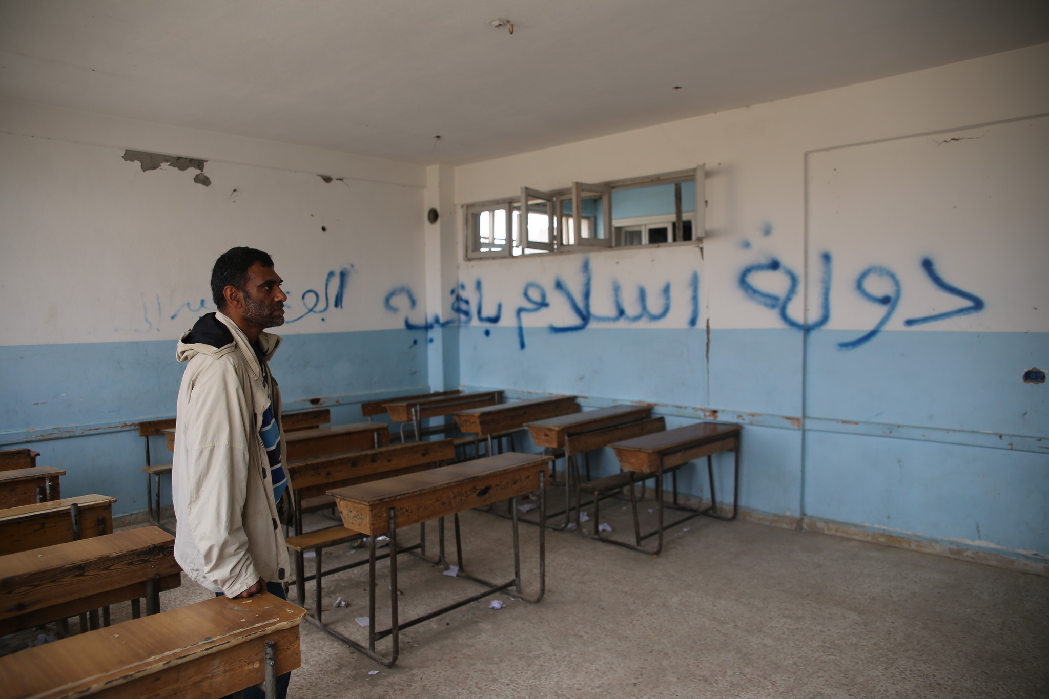 La vieille ville dans le centre de Raqqa n’est plus que bâtiments en ruine détruits par les bombardements. Des immeubles d’appartements ont été réduits en miettes, et beaucoup ressemblent à présent à des millefeuilles effondrés. Les écoles font tout leur possible pour rouvrir. De jeunes enfants jouent avec les vestiges de la guerre, et d’autres fouillent les décombres pour récupérer de la ferraille qui aidera leur famille à acheter de quoi manger.