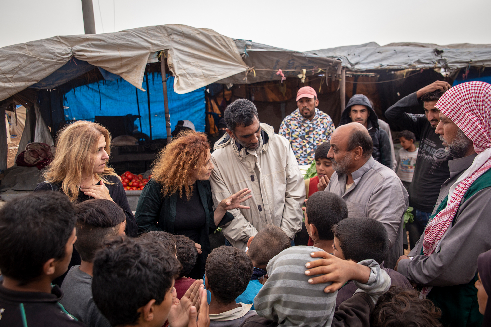 Le nouveau secrétaire générale, Kumi Naidoo, la directrice principale pour la recherche, Anna Neistat, et Donatella Rovera ont visité le camp de personnes déplacées à Ain Issa. C’est là que de nombreux résidents de Raqqa sont restés lorsqu’ils ont fui Raqqa lors de l’opération militaire © Amnesty International