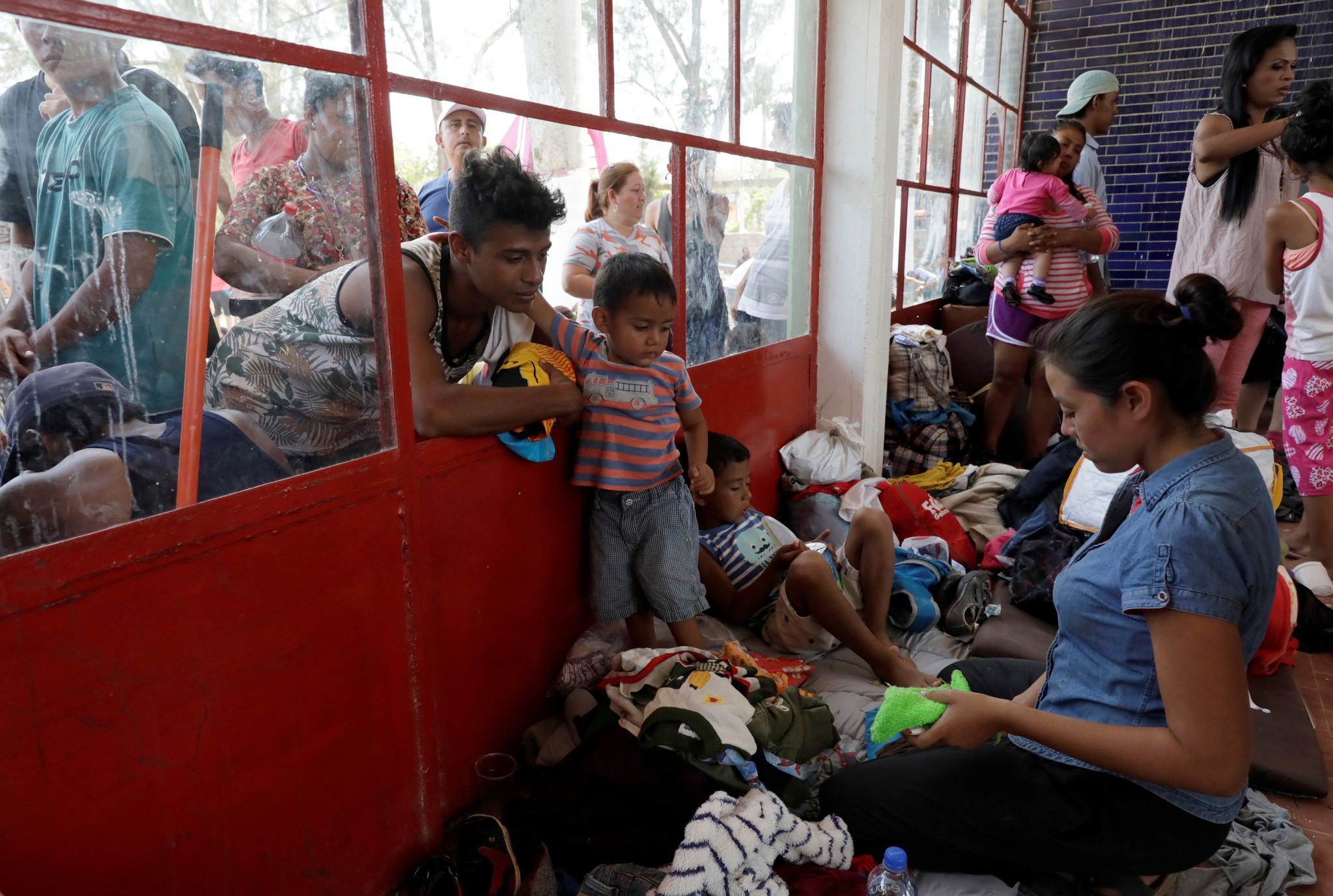 Des réfugiés et des migrants d’Amérique centrale attendent de pouvoir s’enregistrer dans un centre improvisé de l’Institut national des migrations, à Matias Romero (Mexique, 4 avril 2018).© Reuters/Henry Romero.