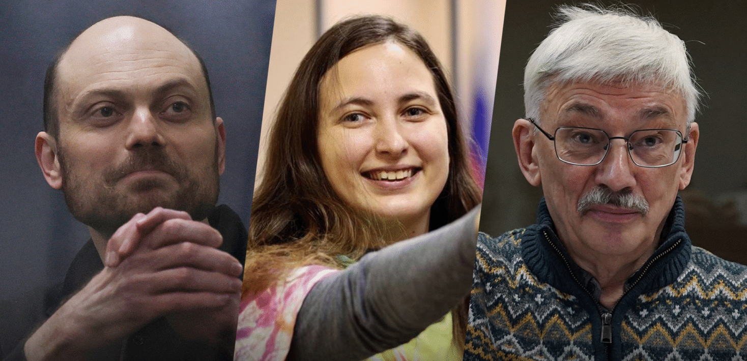 Parmi elles, des militants et des défenseurs des droits humains russes, Oleg Orlov, Aleksandra (Sasha) Skotchilenko, Lilia Chanysheva, Ksenia Fadeeva, Vladimir Kara-Murza, Andrei Pivovarov et Ilya Yashin, ainsi que les journalistes Evan Gershkovich et Alsu Kurmasheva.