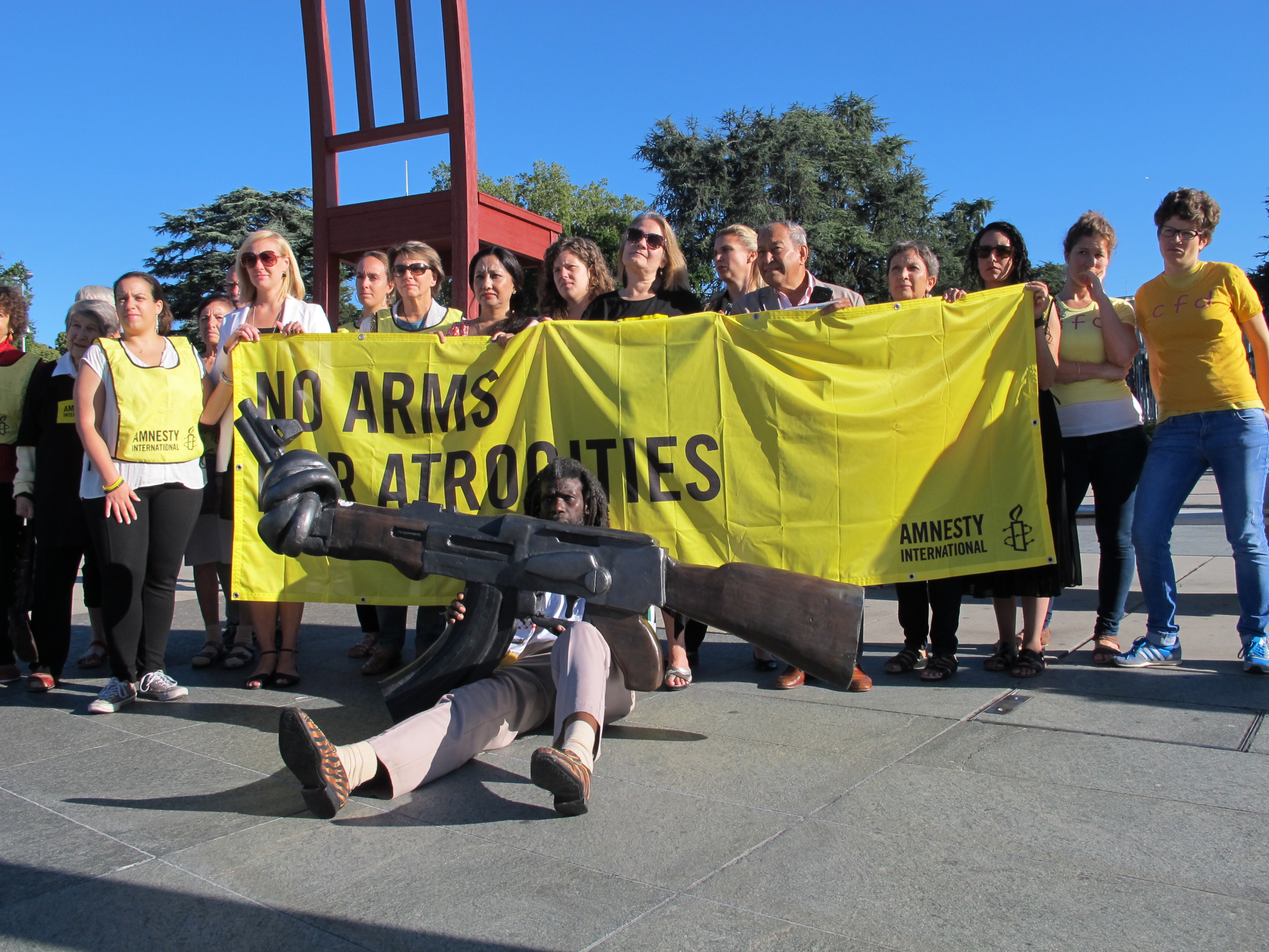 Action « No Arms for atrocities » d’Amnesty International pendant la conférence © N.R.