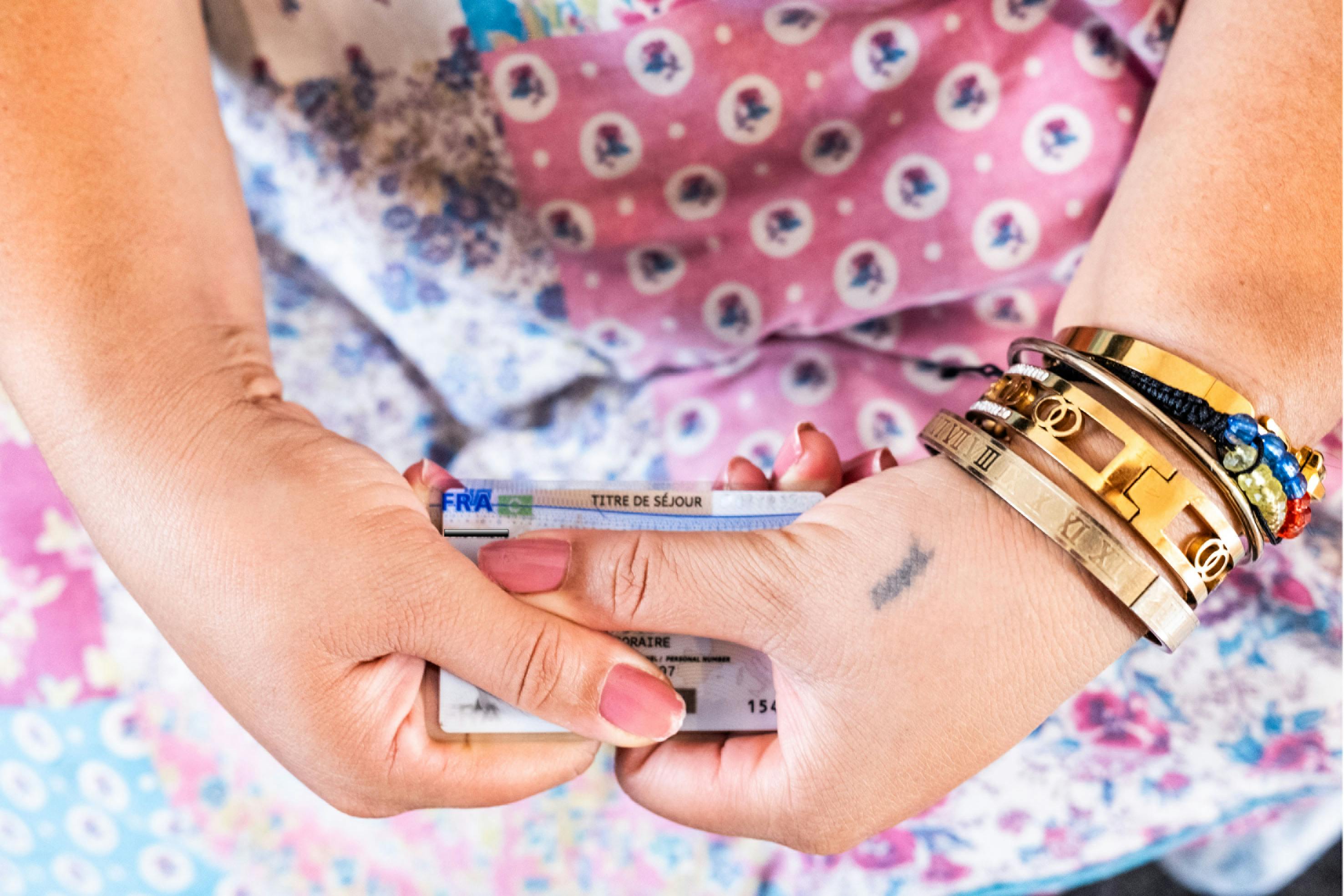 Titre de séjour actuel de Célia, d'une durée d'un an, à Toulouse, 22 Octobre 2025 © Camille Millerand pour Amnesty International France