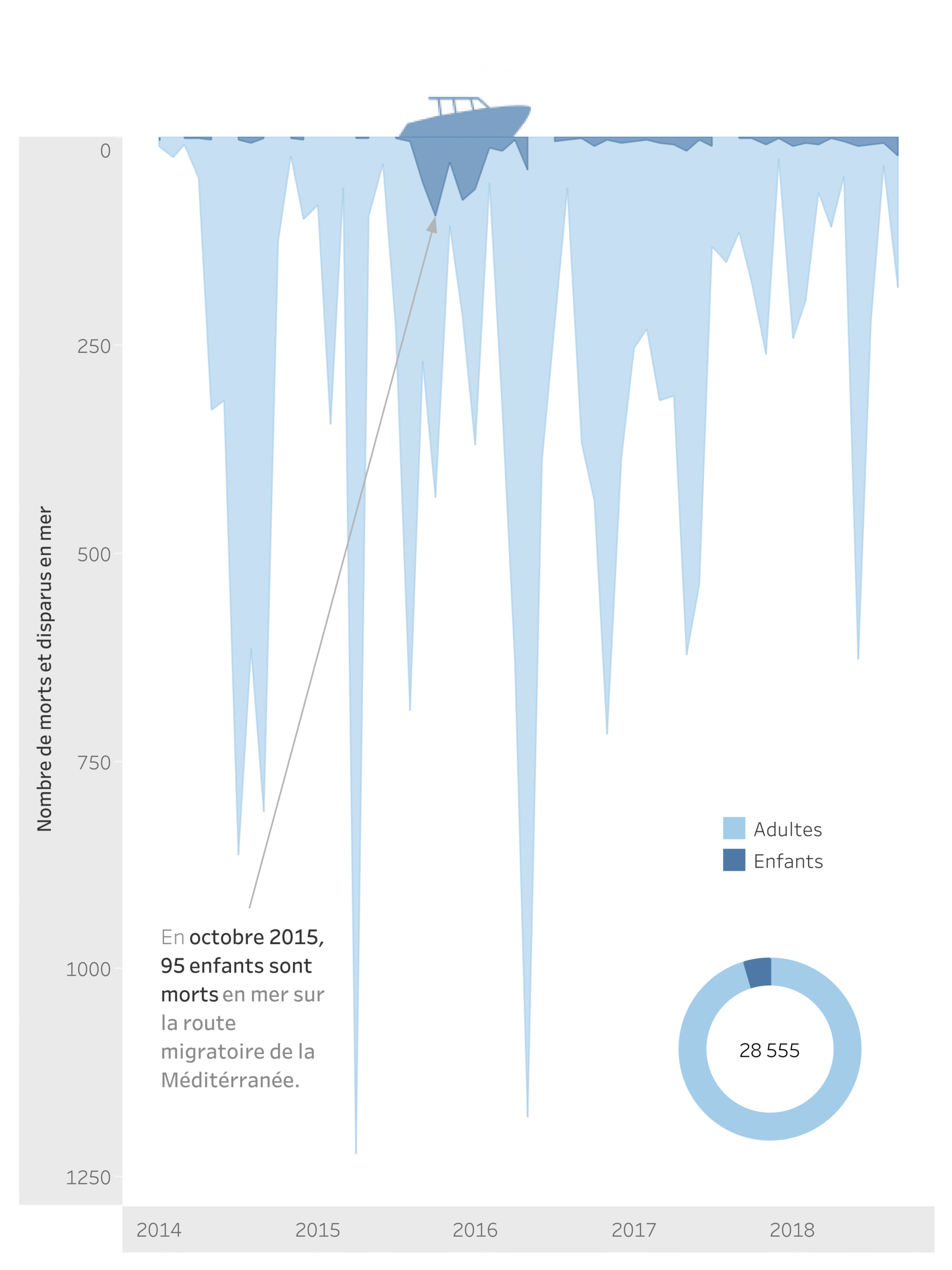 Entre janvier 2014 et septembre 2018, 28 555 migrants sont morts ou disparus en Méditerranée alors qu’ils tentaient d’atteindre les côtes de l’Europe.