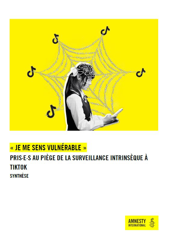 Nous publions deux rapports complémentaires sur la dangerosité de TikTok pour les jeunes. Le premier, intitulé «Poussé·e·s vers les ténèbres. Comment le fil "Pour toi" encourage l’automutilation et les idées suicidaires », met en lumière les atteintes dont sont victimes les enfants et les jeunes utilisant TikTok. Le deuxième, intitulé « Je me sens vulnérable. Pris·e au piège de la surveillance intrinsèque à TikTok », pointe le modèle économique néfaste de la plateforme qui permet et encourage ces atteintes.