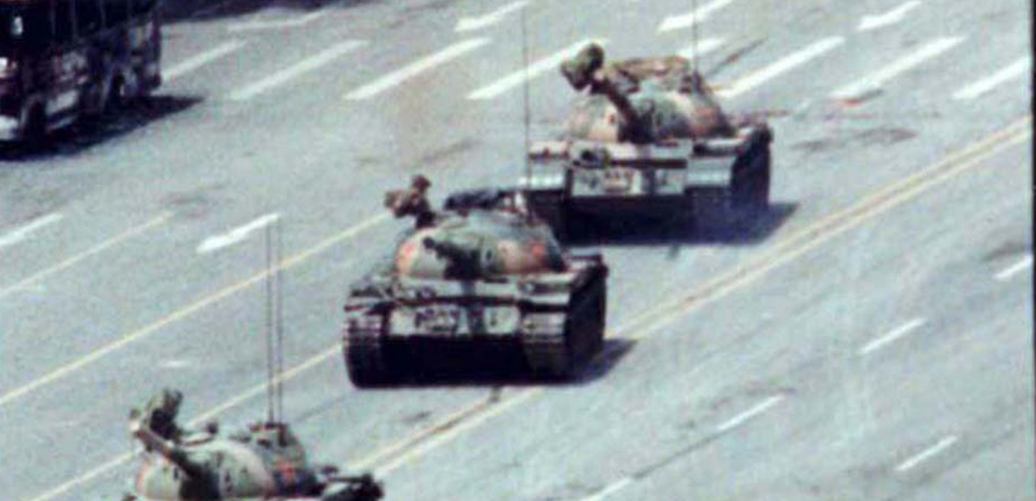C’est l’un des moments les plus emblématiques de la lutte pour la liberté dans l’histoire récente. Un homme seul, tenant un sac plastique dans chaque main, se dresse défiant face à une file de puissants chars près de la monumentale place Tiananmen, à Pékin.