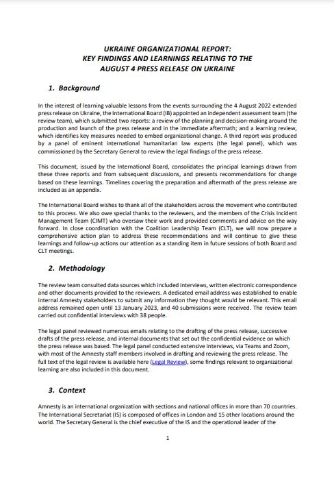 Nous publions aujourd'hui les conclusions du rapport d'enquête sur notre communiqué de presse du 4 août 2022 sur l'Ukraine. Il regroupe les enseignements et les recommandations tirés des examens indépendants que nous avons commandés.