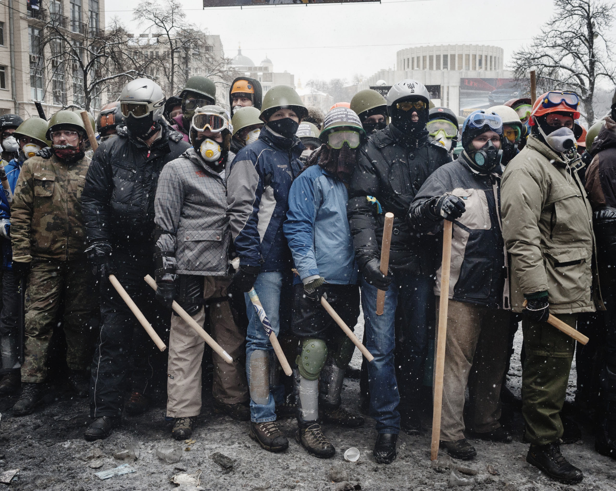 Sur cette image, on voit des étudiants. C’est la première fois qu’ils étaient confrontés à la police. Le soir même, il y a eu une bataille très forte qui a fait cinq morts parmi leurs rangs. Par la suite, ces jeunes se retrouveront sur le front du Donbass, engagés dans des bataillons, pour bloquer l’avancée des séparatistes soutenus par l’armée russe. Ils ont 20 ans à l’époque. Aujourd’hui, une nouvelle génération est au front. Ce donne l’impression qu’il y a une passation comme ça, de génération en génération, de cette idée de lutte pour la liberté. Chaque génération en Ukraine a fait sa révolution, a mené son combat. Je trouve ça magnifique. »
