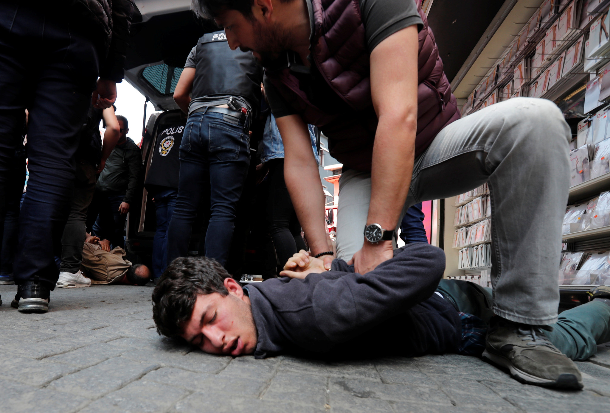 La police turque arrête des manifestants alors qu’ils tentaient de défier une interdiction et marchent sur la place Taksim pour célébrer le 1er mai à Istanbul © REUTERS/Murad Sezer