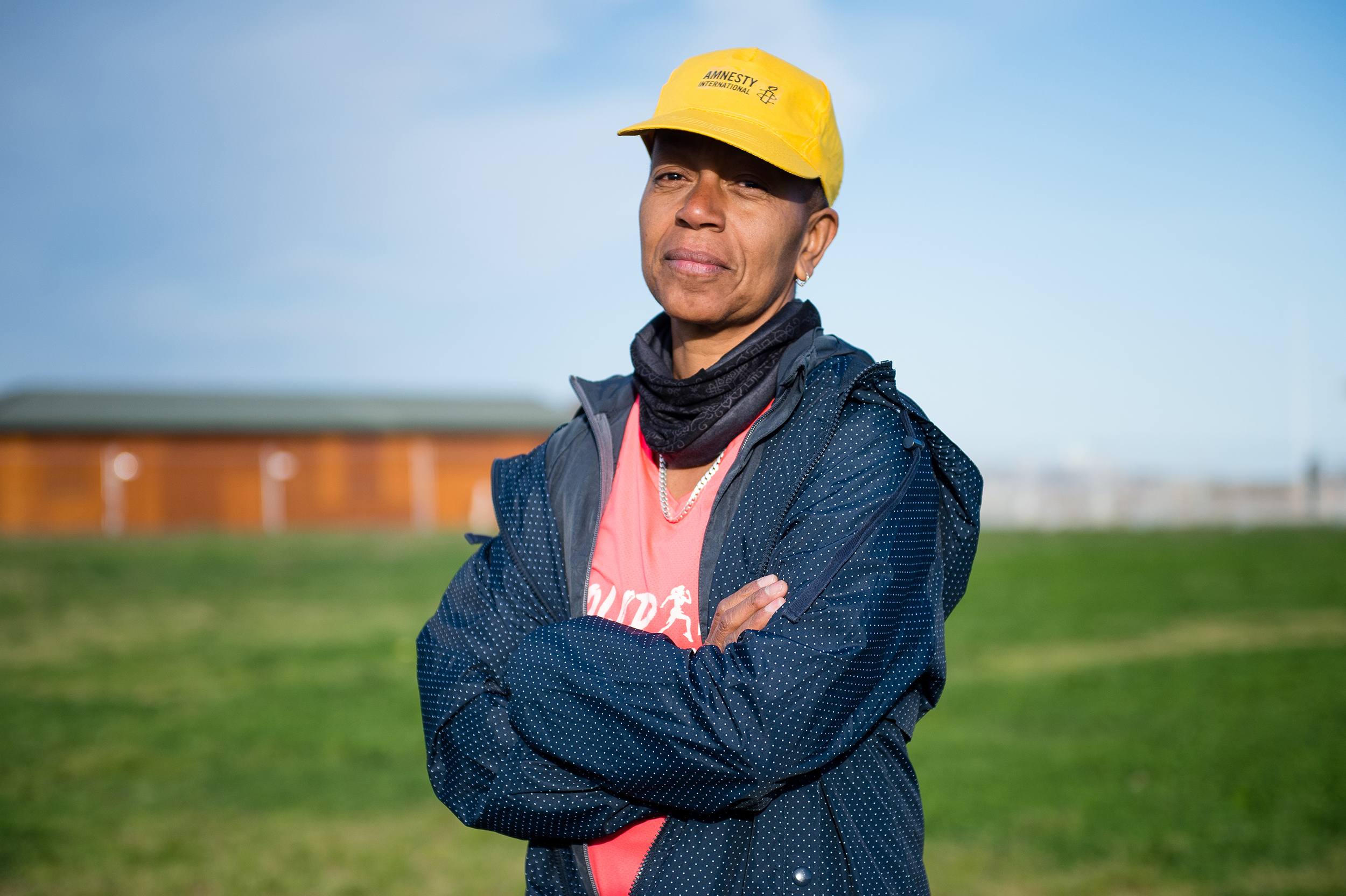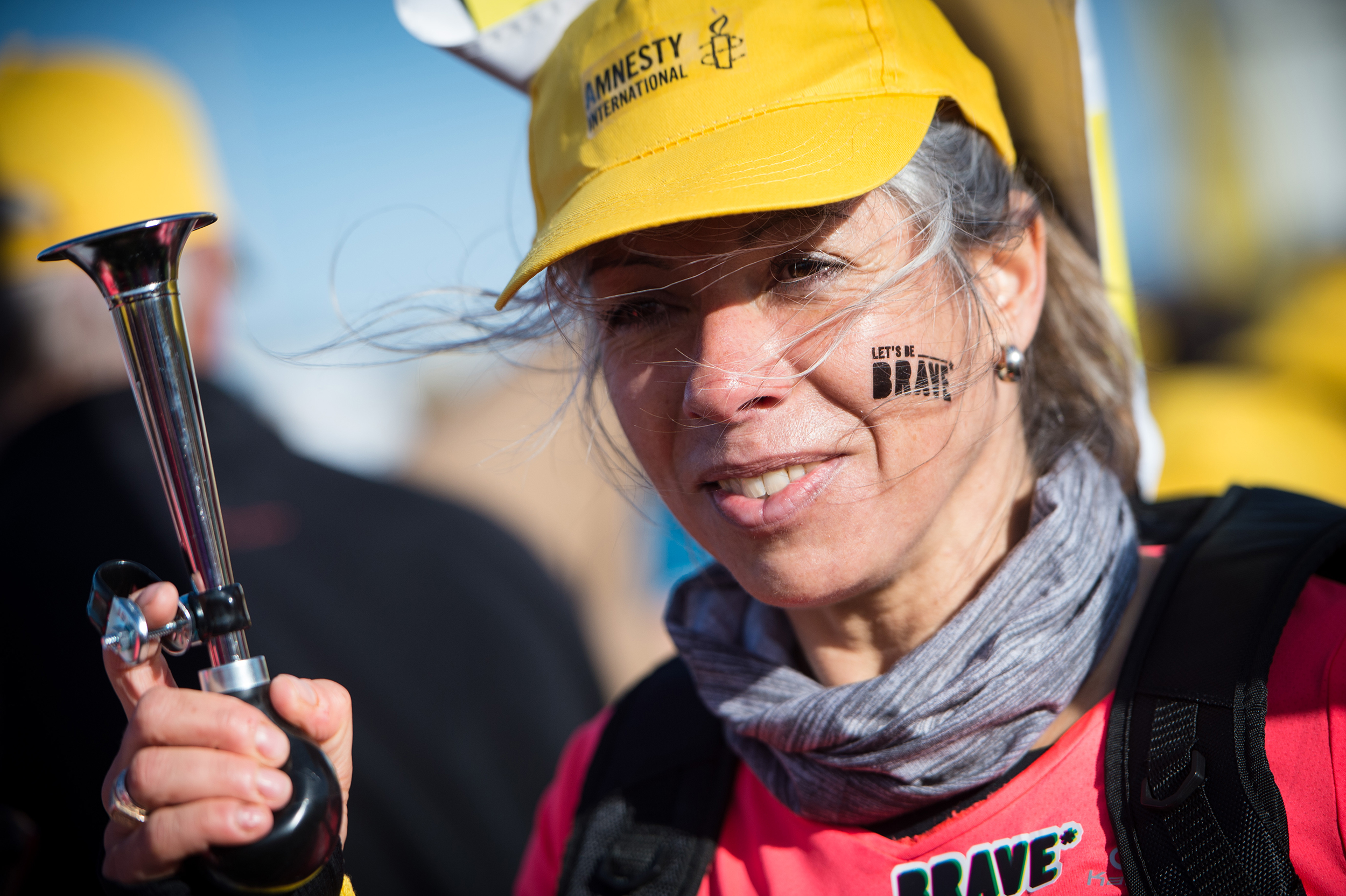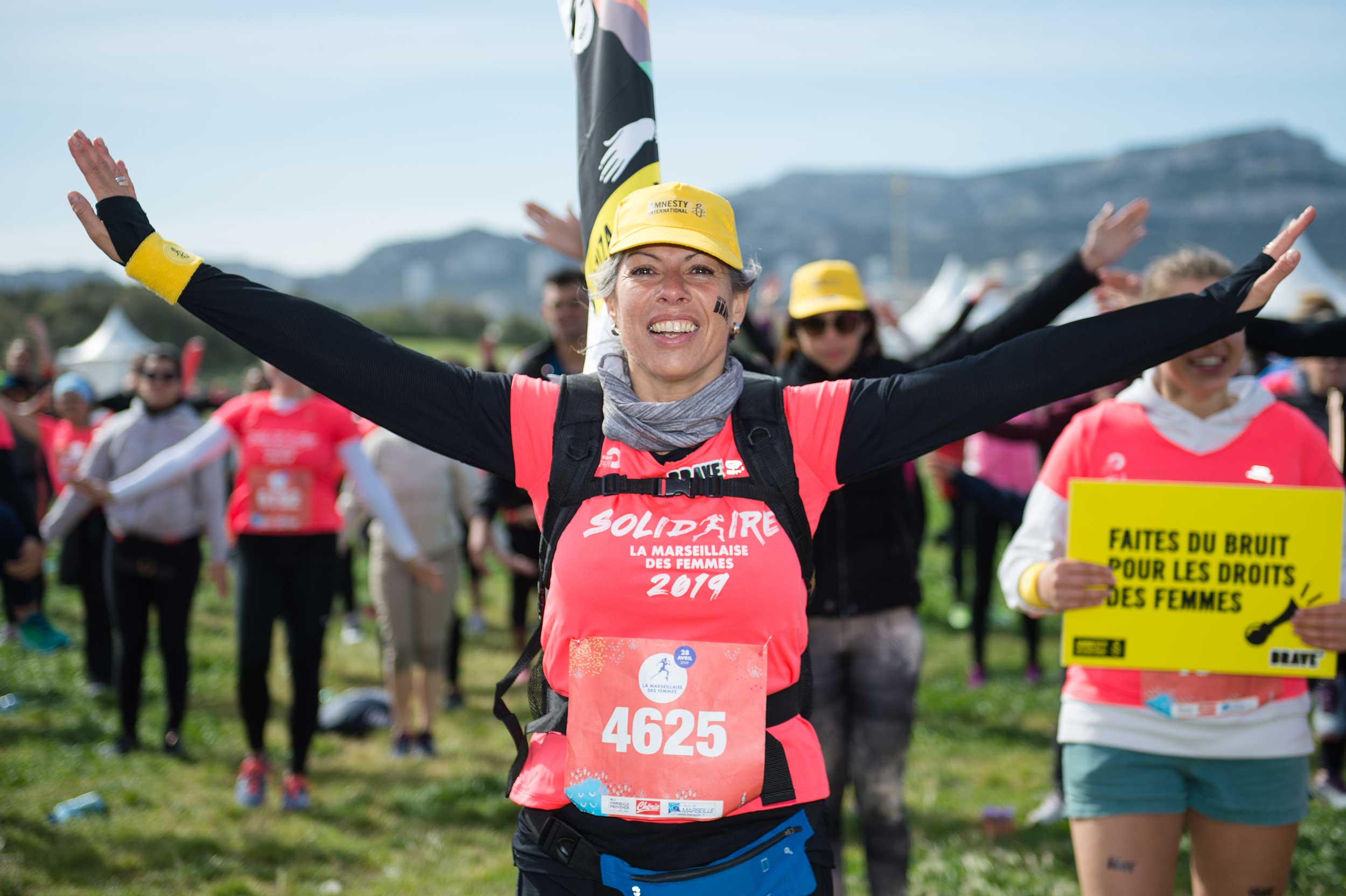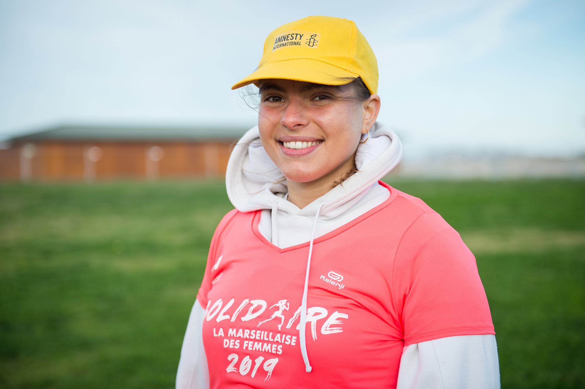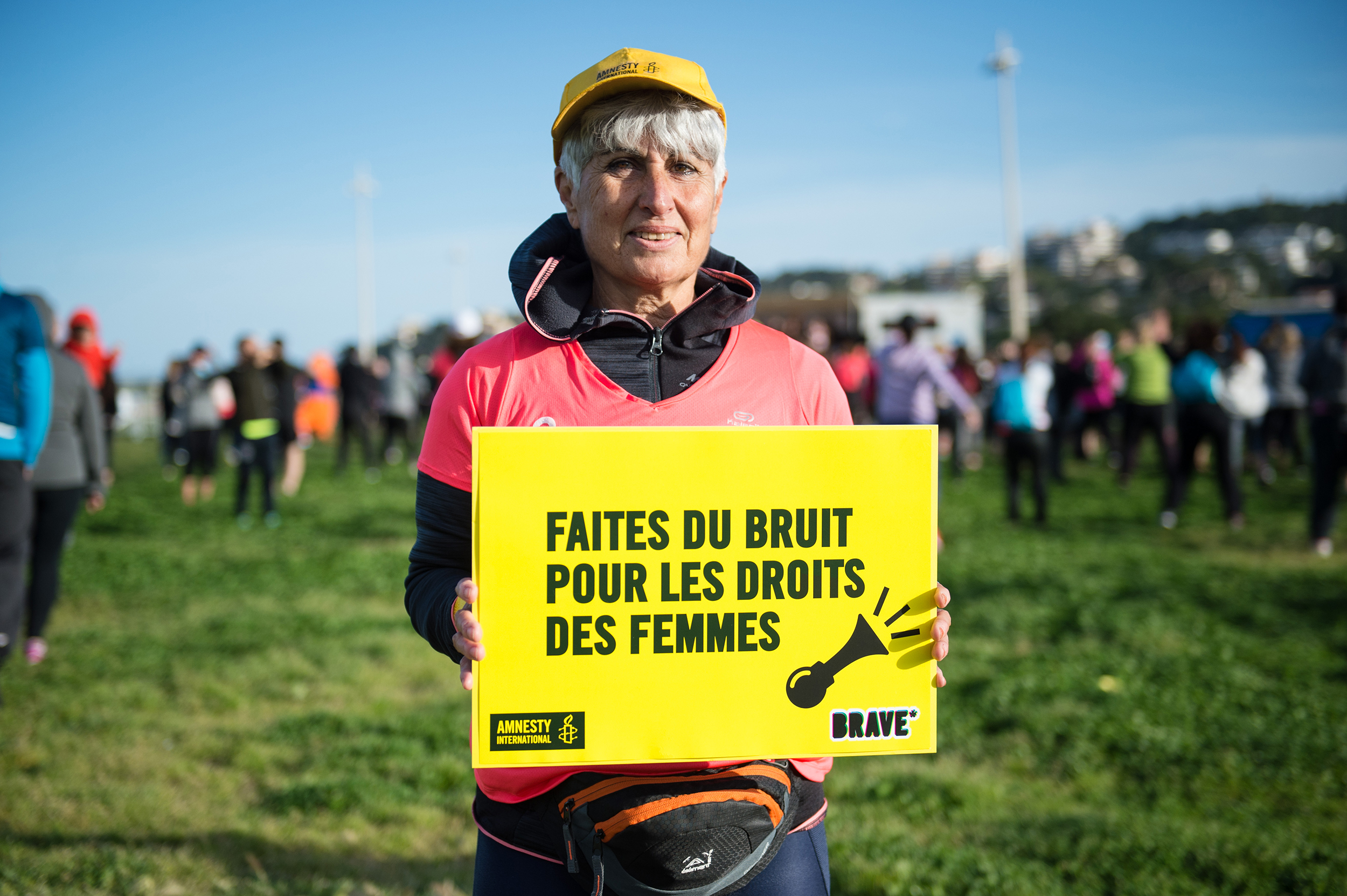 Chantal, 63 ans, sympathisante d’Amnesty International : « Je cours aujourd’hui car il est important que l’on se rassemble, que l’on sente une force commune. Nous, femmes et hommes, qui s’associent avec beaucoup de sincérité. » © Clément Mahoudeau