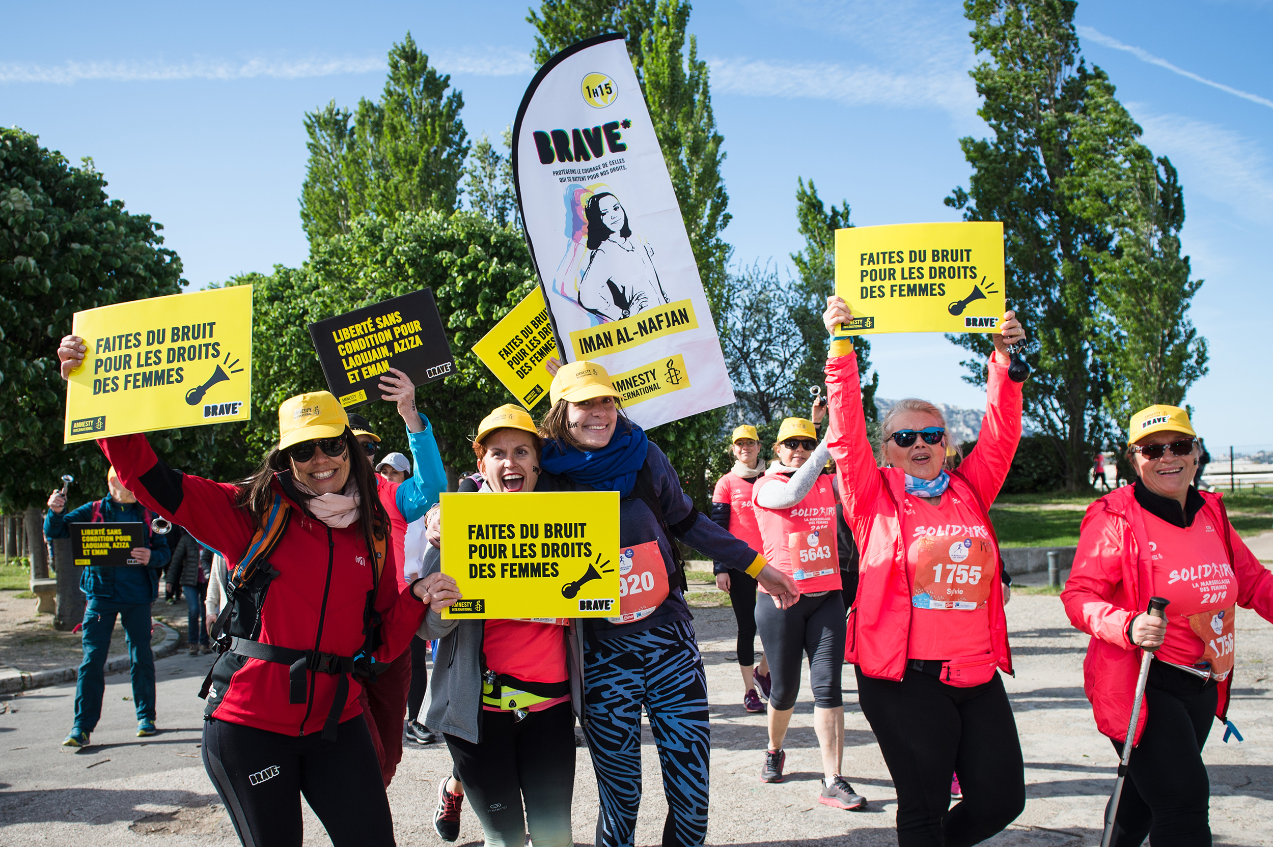 Cette année, lors de la course, nous avons mis en avant le cas de trois militantes d’Arabie saoudite qui ont été injustement emprisonnées pour avoir défendu le droit des femmes à conduire.