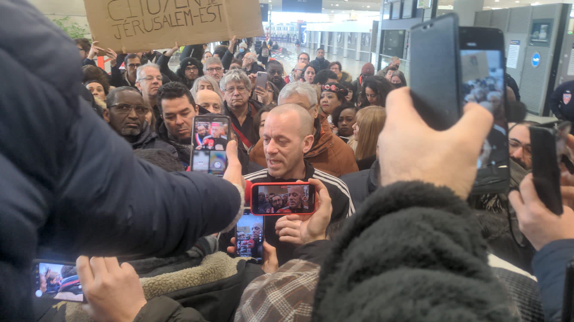 L’avocat franco-palestinien Salah Hamouri lors de son arrivée à l’aéroport Charles de Gaulle, dimanche 18 décembre 2022. Il retrouve sa femme et ses enfants, mais ne reverra sans doute jamais sa terre natale, Jérusalem-Est. Nous sommes là pour l’accueillir. © Gregory Bianchi-Perla
