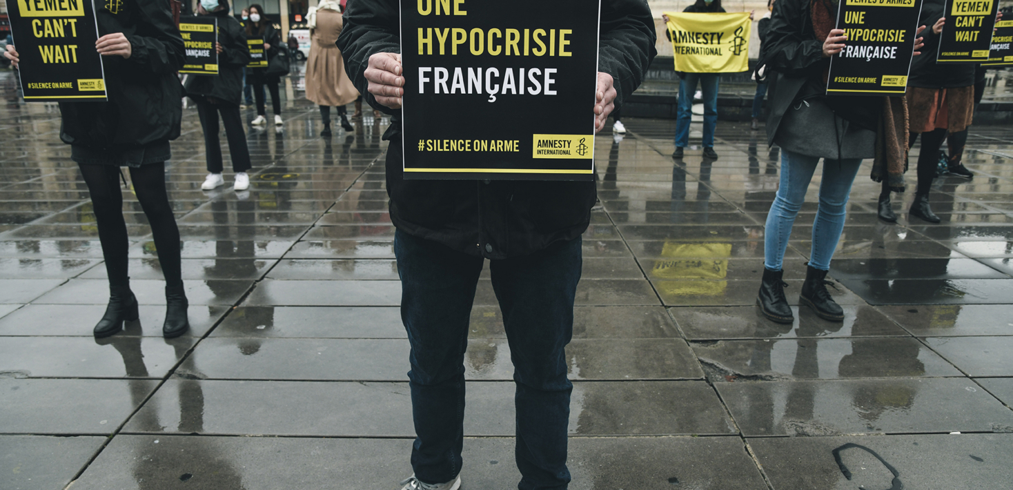 Vidéo : Mobilisation pour mettre fin aux ventes illégales d'armes de la France