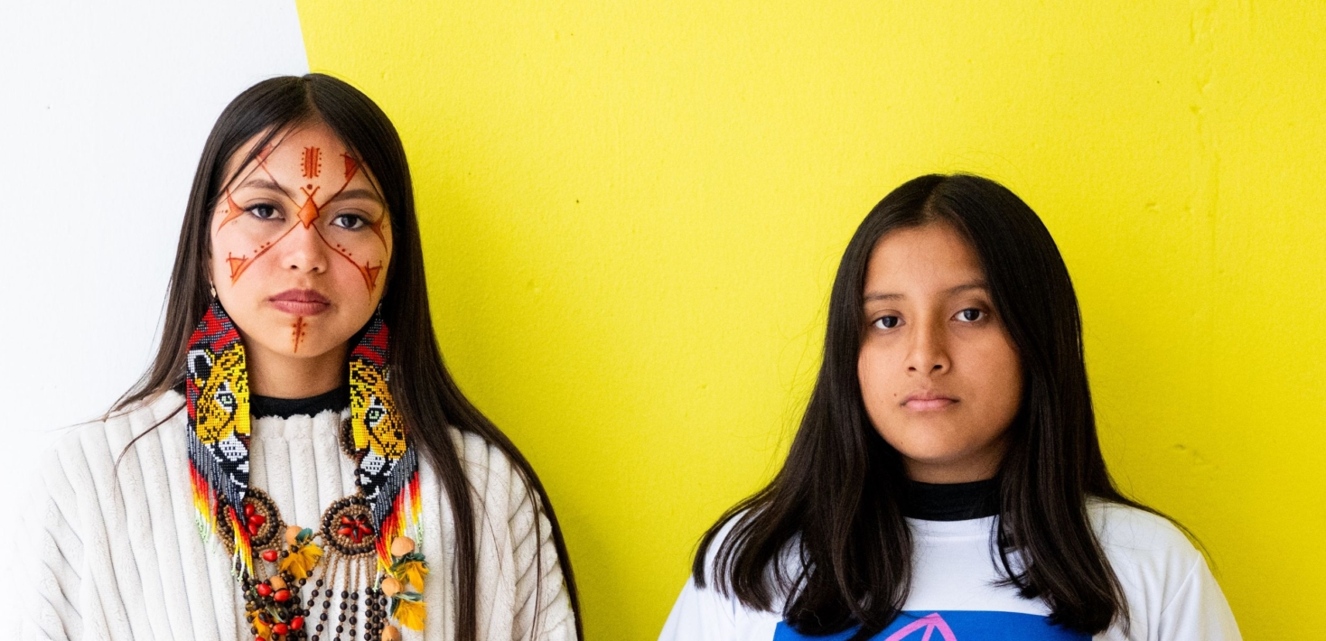 Dannya et Lency font partie du groupe des Guerreras por la Amazonia, («Guerrières pour l’Amazonie»), un collectif de 15 jeunes équatoriennes, âgées de 12 à 19 ans, qui luttent pour faire interdire les torchères de gaz qui brûlent leur Amazonie.