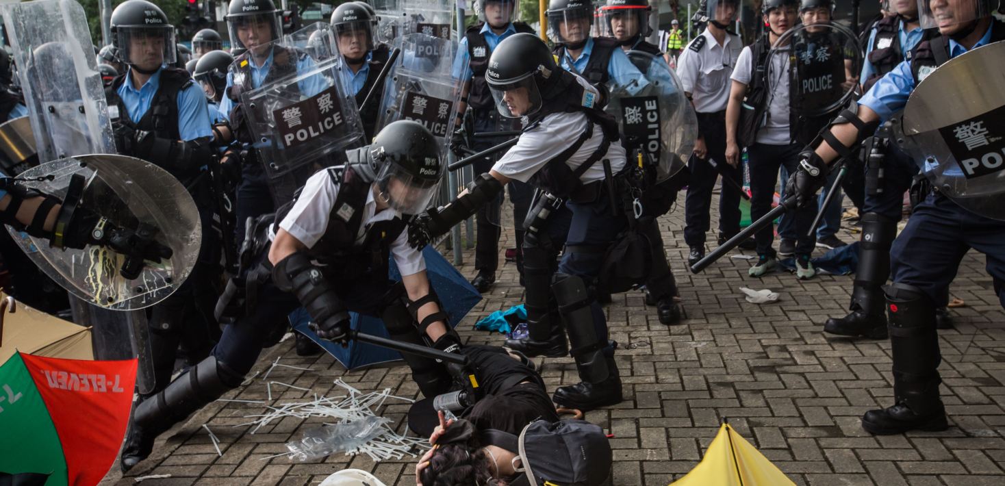 Tout au long des manifestations, nous avons constaté un recours systématique et alarmant à des tactiques imprudentes et inconsidérées de la part de la police de Hong Kong une fois que celle-ci a commencé à appliquer la tolérance zéro dans le cadre du maintien de l’ordre, à l’occasion de rassemblements. Ces violations très étendues des droits humains ont notamment pris la forme d’un recours injustifié et excessif à la force, comme par exemple : l’utilisation dangereuse de balles de caoutchouc et de « sacs à fèves » ; l’emploi abusif de gaz lacrymogène et de gaz poivre ; et l’utilisation de canons à eau.