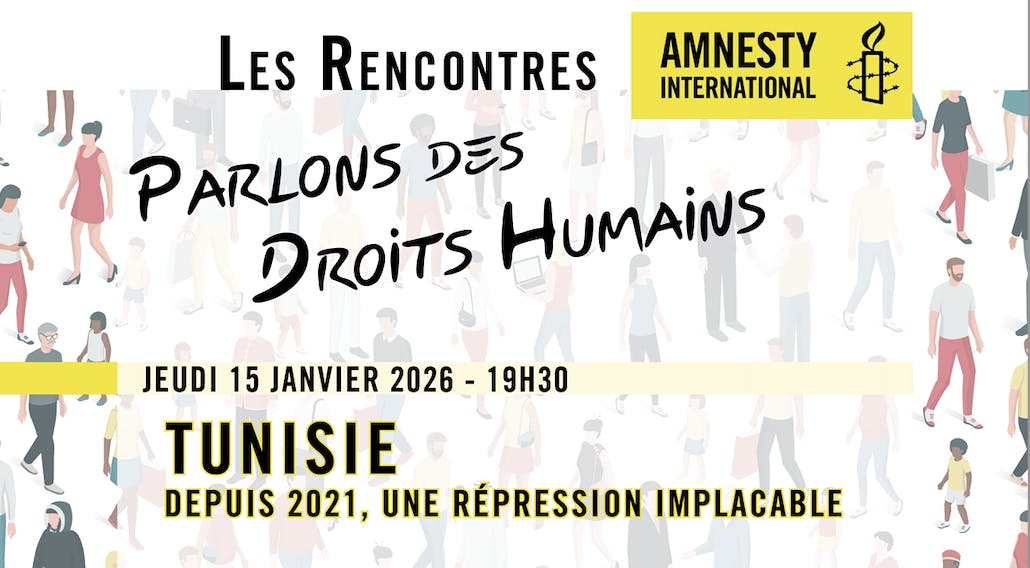 Les groupes Jaurès, Lafayette et Montmartre d'Amnesty International Paris organisent une soirée débat sur les droits humains en Tunisie, le jeudi 15 janvier 2026, à 19h30 au centre Cerise. Entrée libre.