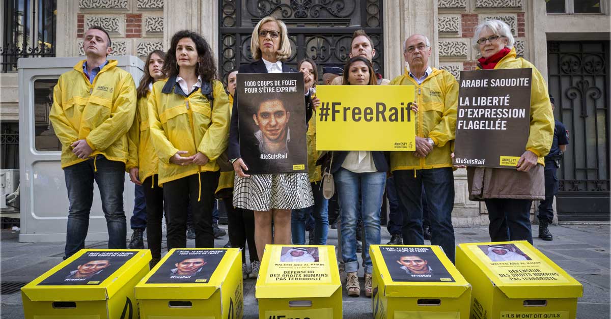 Des dizaines de militants, de défenseurs des droits humains, d’écrivains et d’avocats sont toujours incarcérés, notamment l’avocat de Raif, Waleed Abu al Khair. Ils n’ont fait qu’exercer leurs droits à la liberté d’expression, d’association et de réunion pacifique. Restons mobilisés.