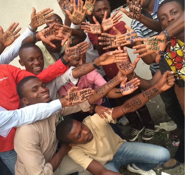 À l’occasion d’une conférence de presse rassemblant des représentants de différents mouvements à Kinshasa, Fred Bauma, un des fondateurs de Lucha, et Yves Makwambala, sympathisant du mouvement sont arrêtés, avec une trentaine de participants.