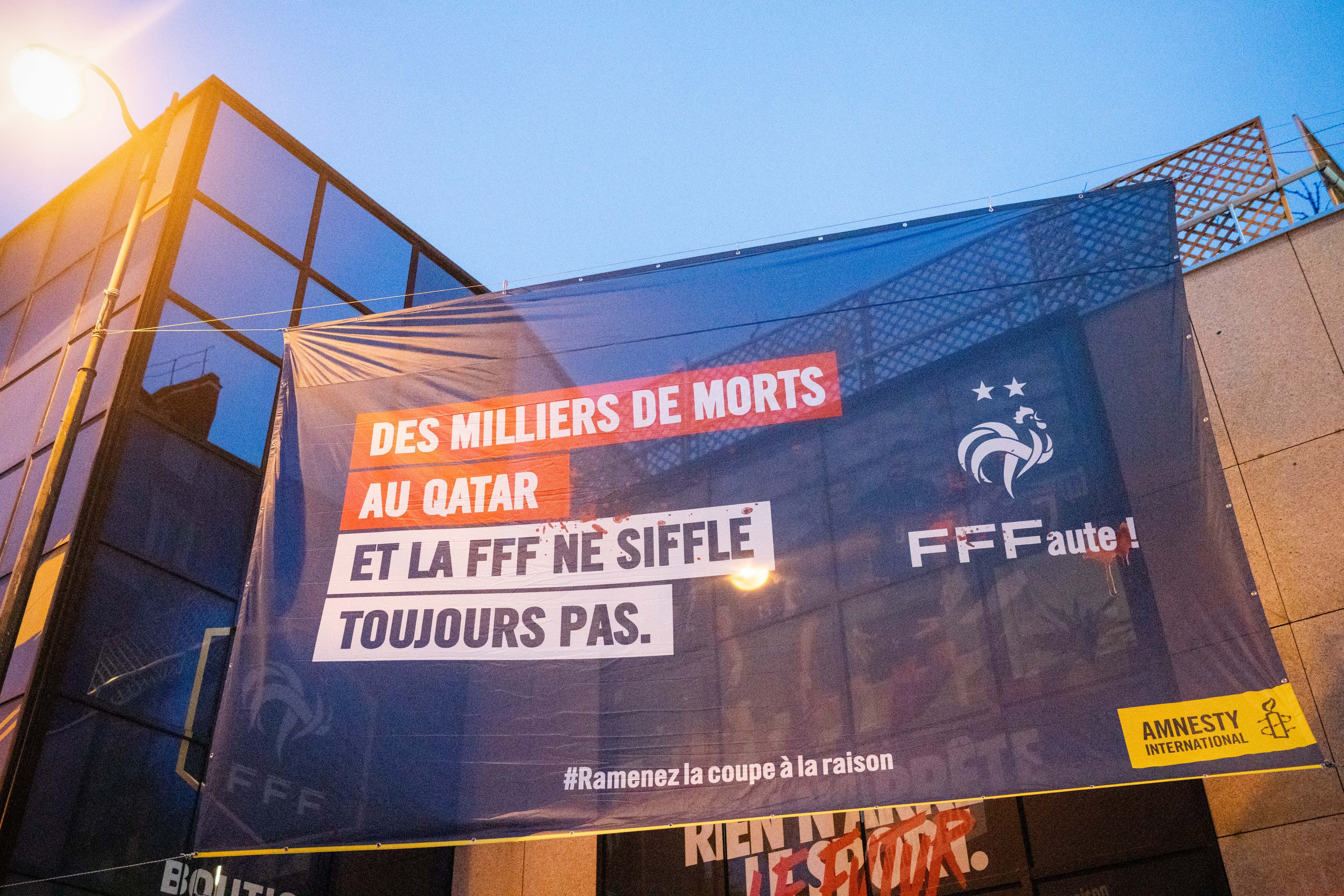 En tant que partenaire commercial de la FIFA, la Fédération Française de Football (FFF) a des responsabilités. Elle doit s’exprimer publiquement pour dénoncer les violations des droits des travailleurs migrants au Qatar, et faire pression sur la FIFA pour tenter d’obtenir une amélioration de leurs conditions de travail et de vie.