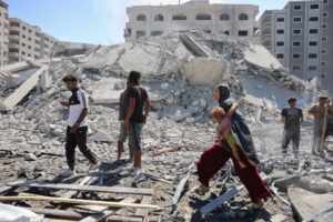 Actualité 8 octobre, 2025 Les Palestiniens fuient la ville de Gaza anéantie par Israël État de Palestine Respect du droit international humanitaire