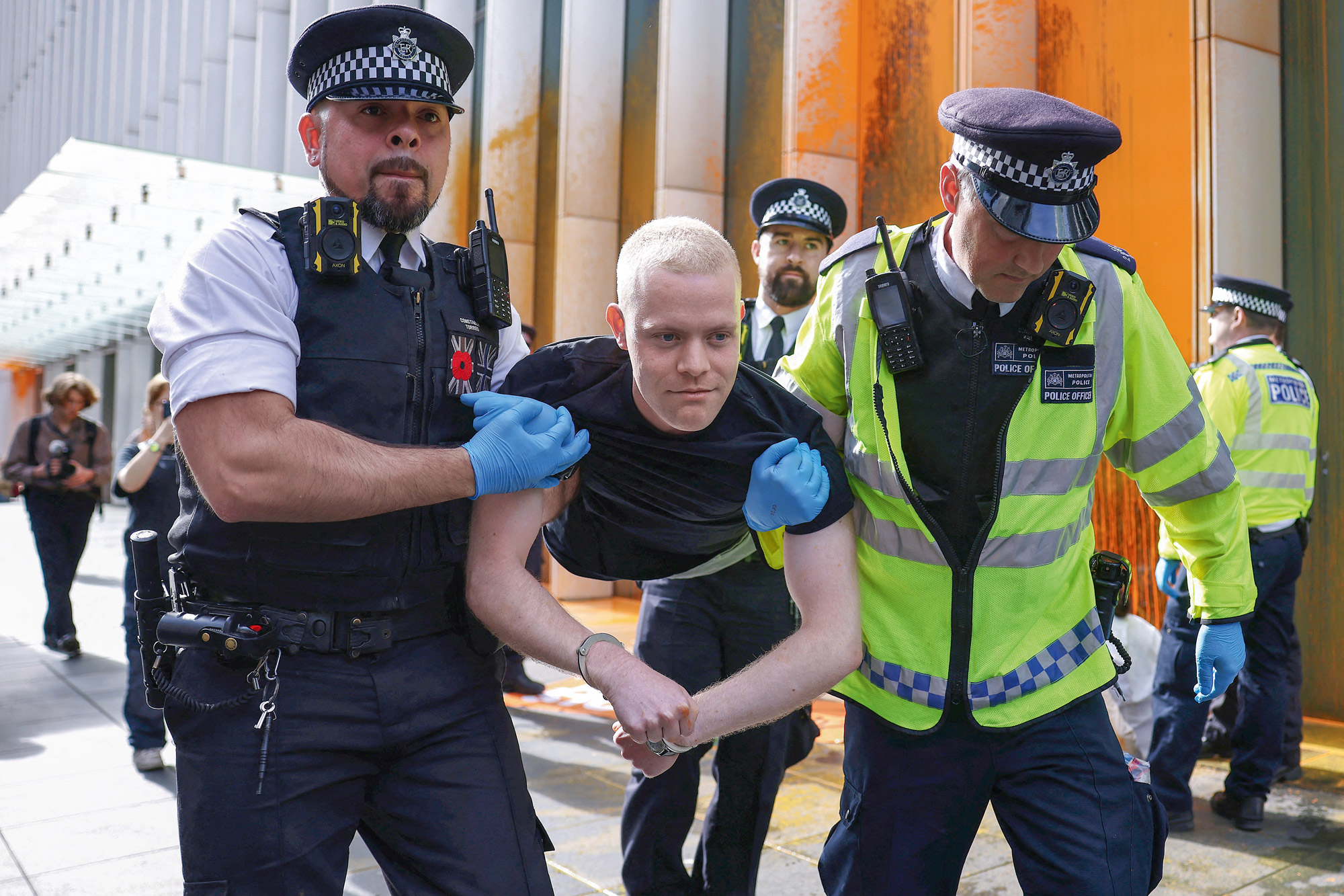 Oscar Berglund est d’accord : « Les forces de droite se sont mobilisées pour encourager la répression de militants non violents, qui ne sont pourtant clairement pas des terroristes ou des organisations criminelles. » La rhétorique employée par certains médias conservateurs britanniques, ainsi que par les hommes et femmes politiques au pouvoir, est aujourd’hui qualifiée de « toxique » par Michel Forst. De même qu’en France, où le ministre Gérald Darmanin traite les Soulèvements de la Terre d’« écoterroristes », Rishi Sunak, Premier ministre britannique de 2022 à 2024, stigmatise les militants climatiques en les qualifiant d’« écofanatiques ». Quant au très populaire journal The Sun, propriété du magnat anglo-australien Rupert Murdoch, il dépeint les militants de Just Stop Oil comme des « égoïstes » responsables de blocages et de nuisances.