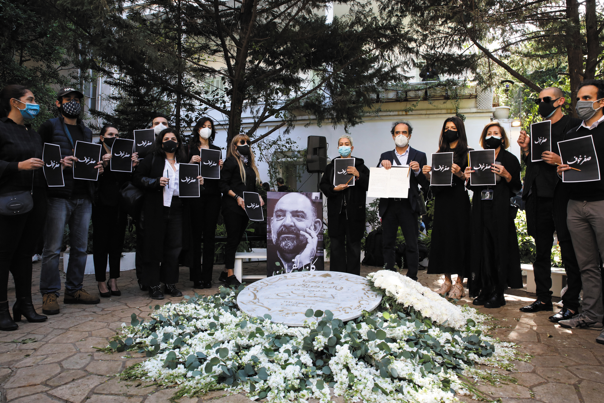 Rassemblement lors d’une cérémonie à la mémoire de Lokman Slim à Beyrouth, Liban, 11 février 2021. Crédit : Florient Zwein / Hans Lucas