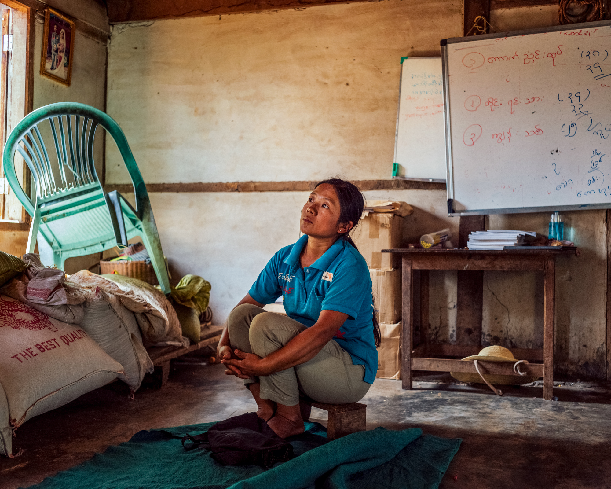 Naw Shar Pha Htoo, enseignante en mathématiques, fait désormais cours dans sa propre maison après le bombardement de son école en février 2024. Quatre élèves y ont été tués.