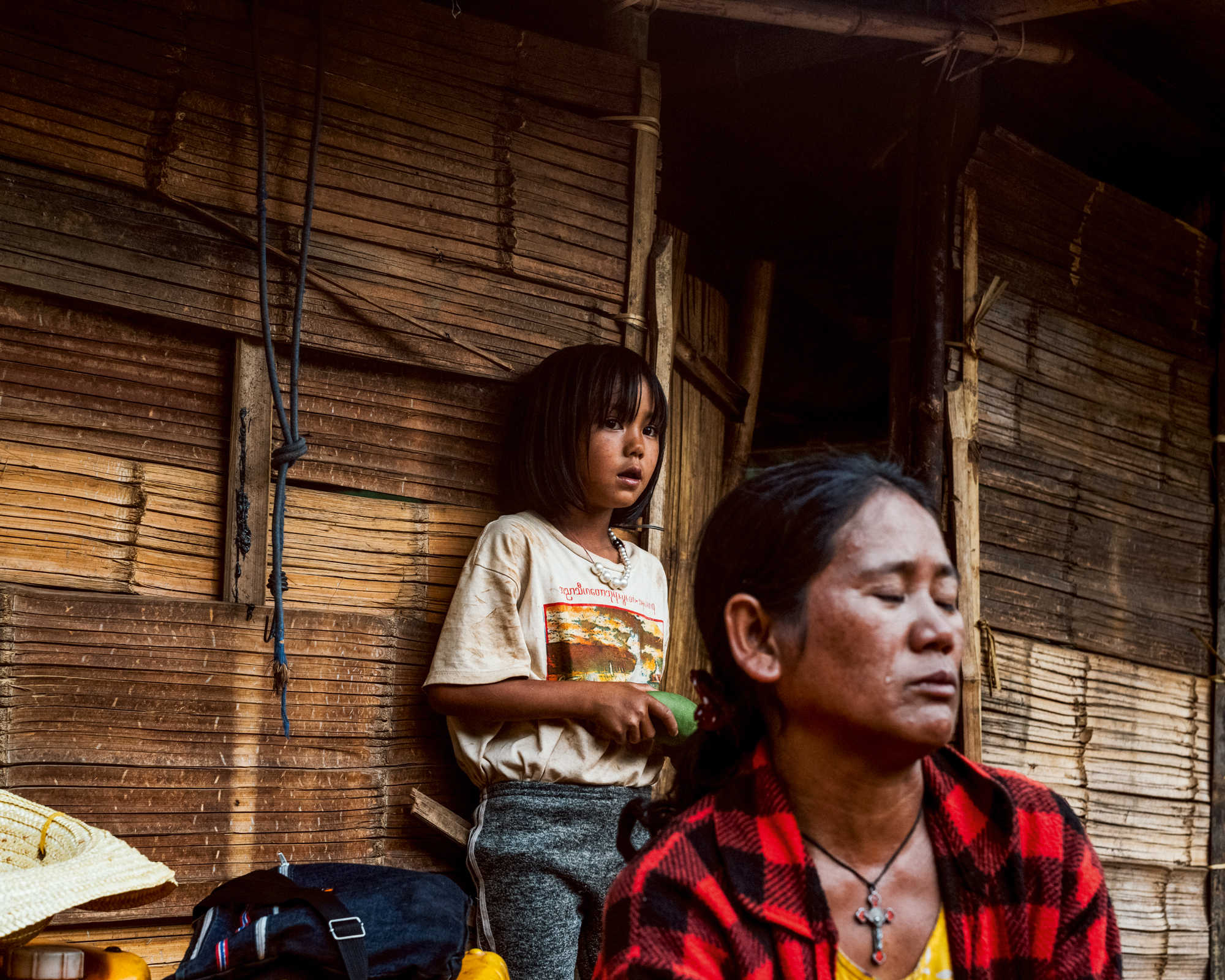 Ellia, un agriculteur de 32 ans, père de quatre enfants, a été tué à Moso. « Ce matin-là, il était parti travailler aux champs vers 8 heures, se souvient sa veuve, Khin Lon, 39 ans. Puis j’ai appris qu’une colonne militaire marchait vers Moso. Je l’ai appelé, il m’a dit de ne pas m’inquiéter, qu’il serait de retour dans la soirée. Ensuite, nous sommes allés nous cacher dans la montagne avec les enfants. C’est là que j’ai aperçu la fumée. » Tandis qu’elle raconte, sa petite dernière s’agrippe à ses épaules, pour jouer. L’aînée écoute sa mère dont la colère déborde, des larmes inondent ses joues. « Pourquoi lui ? Pourquoi ? Quand mes enfants me demandent “Pourquoi ils ont tué papa ?”, je ne sais même pas quoi leur répondre ! Mon mari était innocent. Il me manque tellement, j’ai mal à la tête à force de pleurer, dit Khin Lon, en essuyant ses yeux d’un revers de main. Mais je prie pour lui. Il vit dans mes rêves maintenant. »