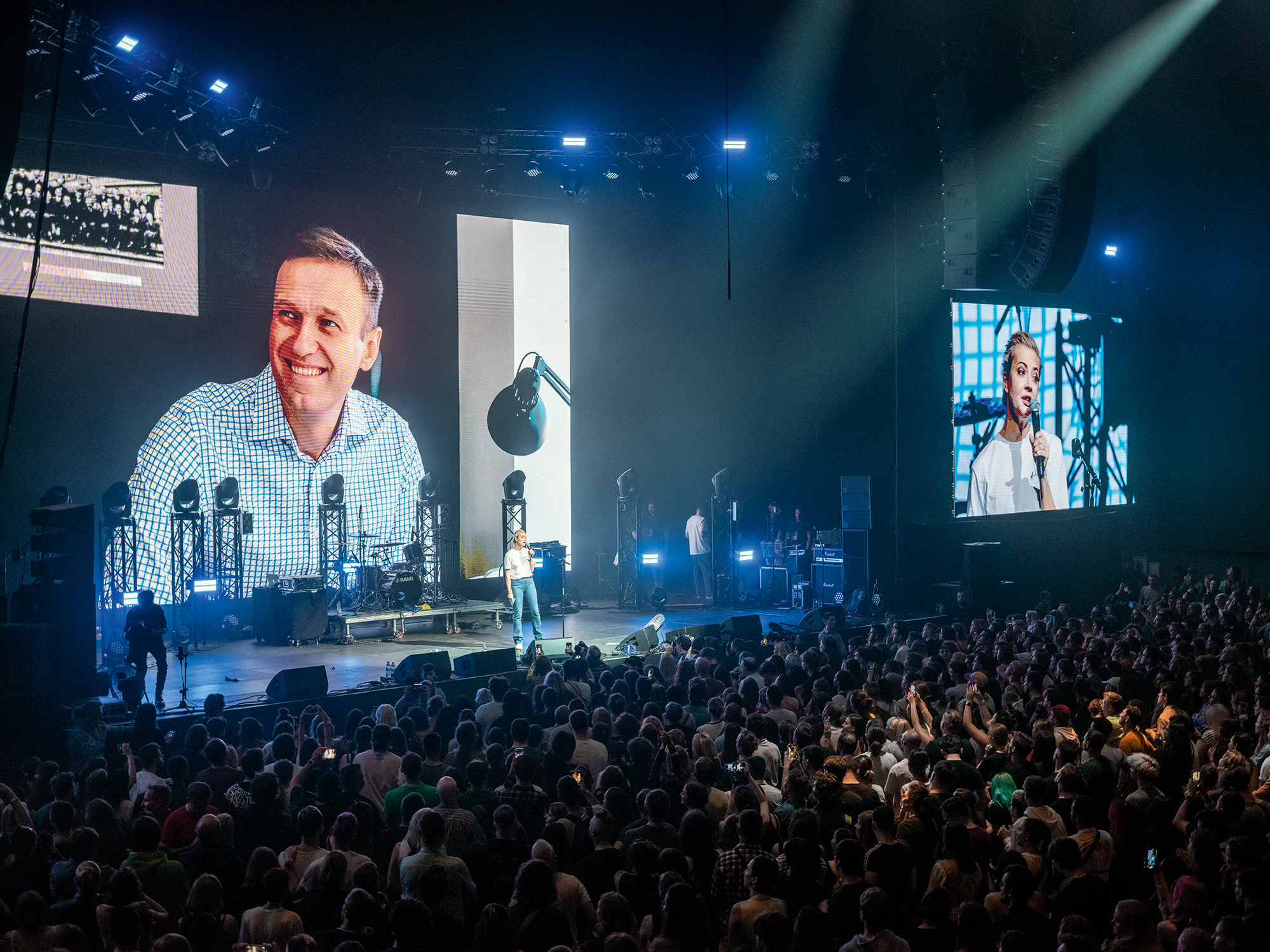 Navalny s’était imposé comme le leader naturel de l’opposition en tentant de faire vaciller un système privé d’alternance. « Il était libéral, charismatique, parlait la même langue que toi. À côté, le Parti communiste sentait la naphtaline », se souvient Mikhaïl, juriste de 28 ans qui a rejoint l’opposant en 2017, après l’avoir croisé dans sa ville de Sibérie, à Tioumen. Antidote au défaitiste, l’adversaire principal du Kremlin entendait incarner « la belle Russie du futur », projet qui, en 2024, a du plomb dans l’aile. Et la disparition d’Alexeï Navalny remet en question l’avenir d’un mouvement que l’exil a déjà sérieusement affaibli. Lors de la soirée anniversaire à Berlin, la question s’efface derrière l’hommage au disparu. Sur scène, sa veuve, Ioulia Navalnaïa, multiplie les messages d’encouragement : « Le plus important, c’est de ne pas abandonner […] S’il vous plaît, n’oubliez pas que nous sommes forts et nombreux. »