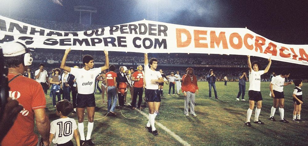 Novembre 1981, Adilson Monteiro Alves est nommé directeur sportif des Corinthians, le club de foot de São Paulo. Le Brésil vit alors sous le joug des militaires depuis dix-sept ans. Sociologue de formation, le nouveau dirigeant de 35 ans a connu la prison pour dissidence quelques années auparavant. Le club qu’il récupère est à la peine. Afin de remobiliser ses troupes, il leur propose une expérience inédite : vivre en autogestion. Du jardinier au président, des joueurs aux cuisiniers, chaque salarié du club dispose d’une voix, et toutes les décisions sont prises collectivement, y compris lorsqu’il s’agit de redistribuer les recettes du club. Les cadres du vestiaire (1) adhèrent au modèle. Et les résultats suivent. Le club remporte deux titres de champion de l’État de São Paulo en 1982 et 1983. Cette épopée est baptisée « démocratie corinthiane ». Pas seulement pour le fonctionnement interne du club, mais aussi pour ses prises de position contre la dictature militaire brésilienne. Lors du championnat de foot de São Paulo, en 1983, les joueurs brandissent une banderole sur le terrain : « Gagner ou perdre, mais toujours en démocratie. » Et l’année suivante, Socrates, le capitaine de l’équipe, participe publiquement au mouvement « Diretas Ja » qui réclame des élections directes à la junte militaire. Il faudra attendre 1989 pour que les Brésiliens élisent enfin leur chef d’État au suffrage universel. Le candidat du Parti de la reconstruction nationale l’emporte d’une courte tête devant un certain… Luiz Inácio Lula da Silva,l’actuel président.
