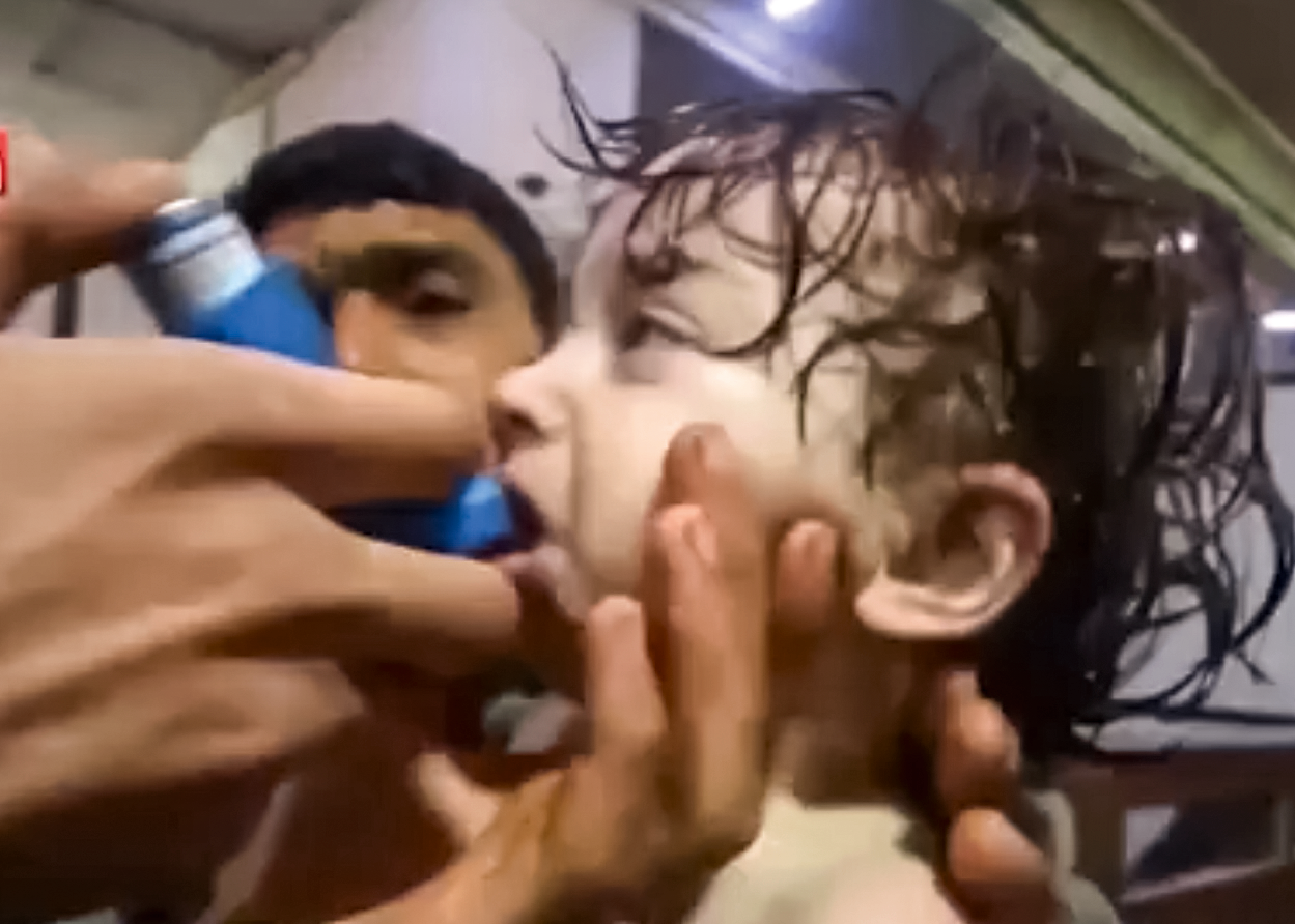 Images d’enfants soignés à l’hôpital souterrain après leur intoxication au chlore, extraites de la vidéo des Casques blancs.