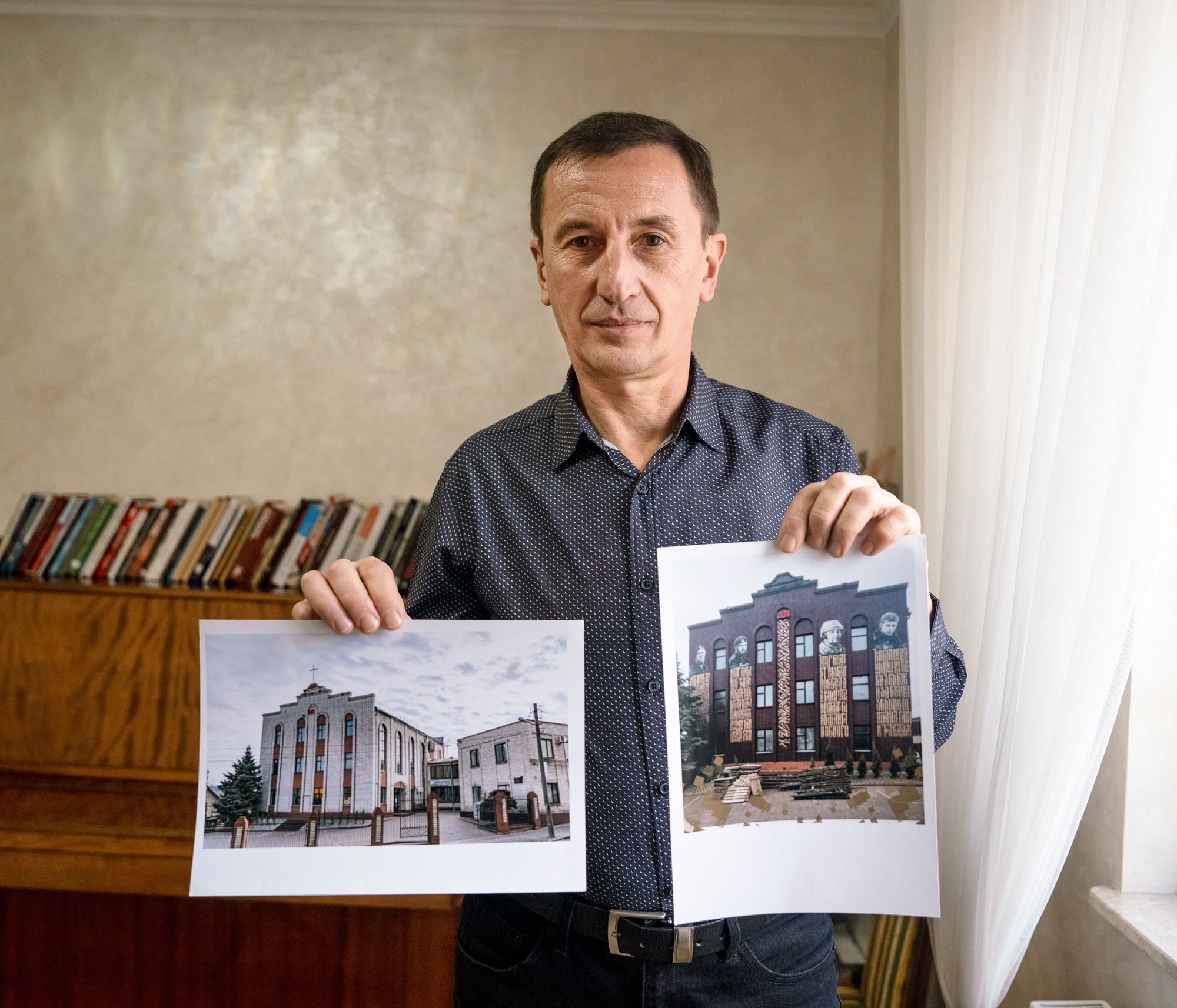 « Le monde doit connaître la vérité, déclare le pasteur ukrainien. À Mélitopol, 12 églises sont actuellement fermées. Certaines transformées en bases militaires. » Les autorités russes ont réquisitionné l’église de la Grâce, où il officiait, et l’ont convertie en ministère de la Culture de la région de Zaporijia. Mykhailo Brytsyn documente ces faits, mais nourrit un espoir. Un jour, lorsqu’il reviendra dans sa ville, il réinstallera la croix au sommet du bâtiment. Et là où les autorités russes ont placé les visages des séparatistes du Donbass, sur la façade, il apposera des drapeaux ukrainiens.