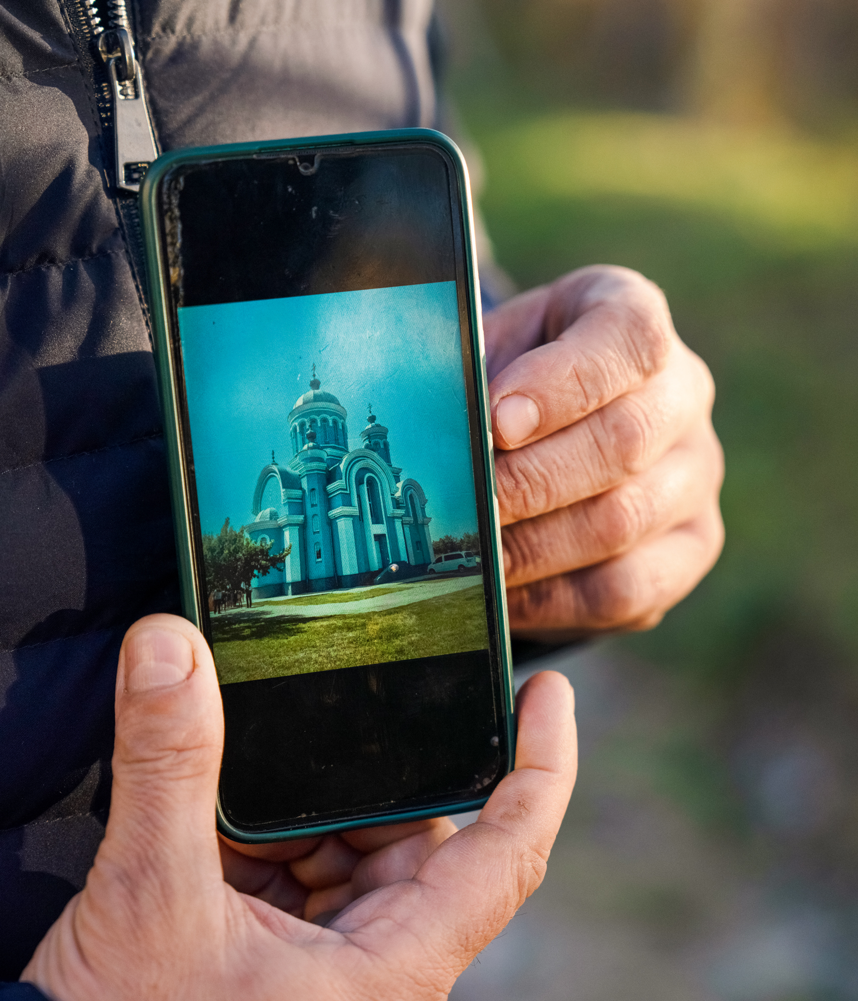 Le père Novosilsky garde dans son téléphone ces photos de lui et de son église quand il officiait dans son village situé dans l’oblast de Kherson. En 2014, la guerre au Donbass et l’annexion de la Crimée l’ont convaincu de ne plus prêcher selon la ligne du patriarcat de Moscou. Lorsqu’en février 2022, les Russes envahissent son village, il décide de rester. Arrêté quelques mois plus tard, il est libéré en mai 2023.