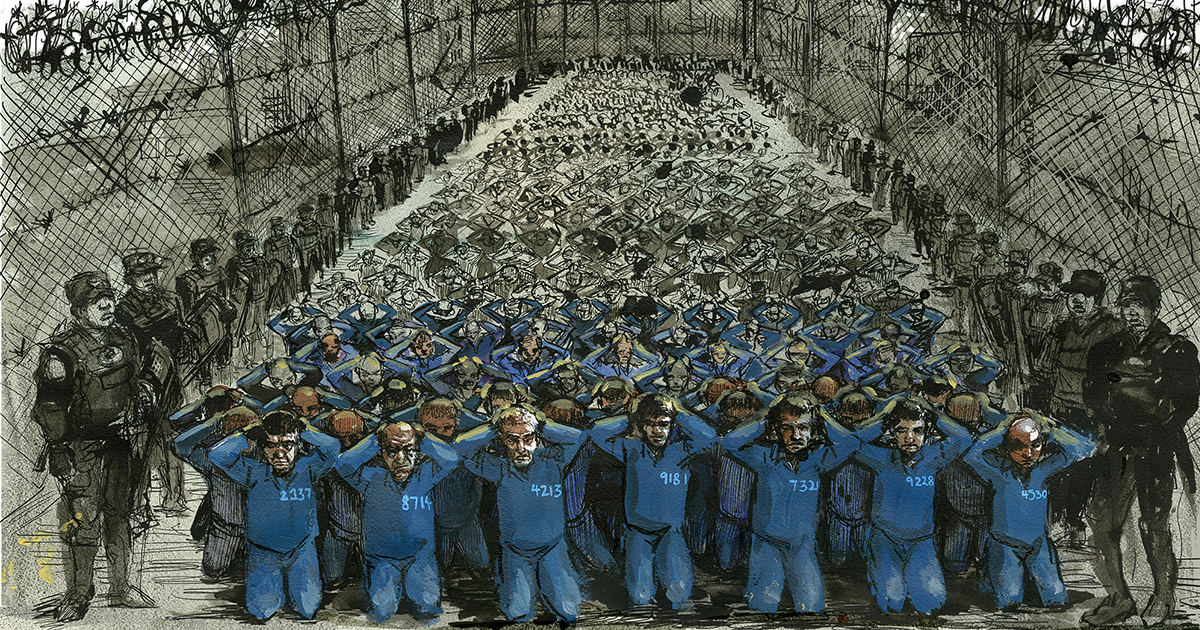 Amnesty International a collaboré avec l’artiste Molly Crabapple, qui a créé une série de 30 illustrations saisissantes dépeignant les scènes décrites par les ancien·ne·s détenu·e·s. Vous retrouverez ces illustrations tout au long du rapport ainsi que sur le site multimédia, à l’adresse https://xinjiang.amnesty.org.