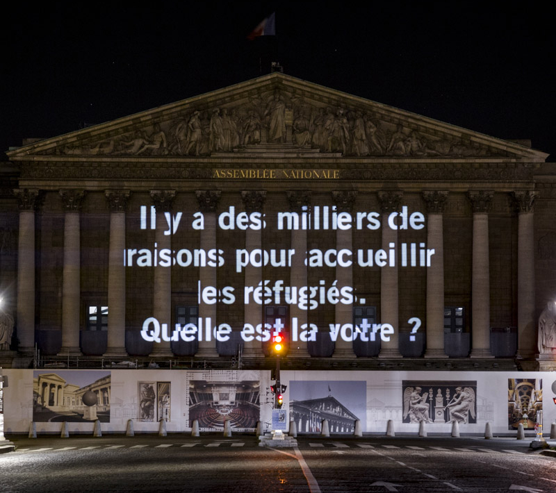 « Parce que nous ne choisissons pas le pays où l’on naît », « Parce que ma meilleure amie est une réfugiée », « Parce que ça pourrait être nous un jour ! », « Comment avoir bonne conscience en laissant des êtres humains mourir en mer ? », etc. Projetées hier, dans la nuit du 18 au 19 juin, sur l’Assemblée nationale, toutes ces « raisons » s’adressent aux autorités françaises afin d’exiger qu’elles s’engagent davantage pour la protection des personnes qui fuient les violences.
