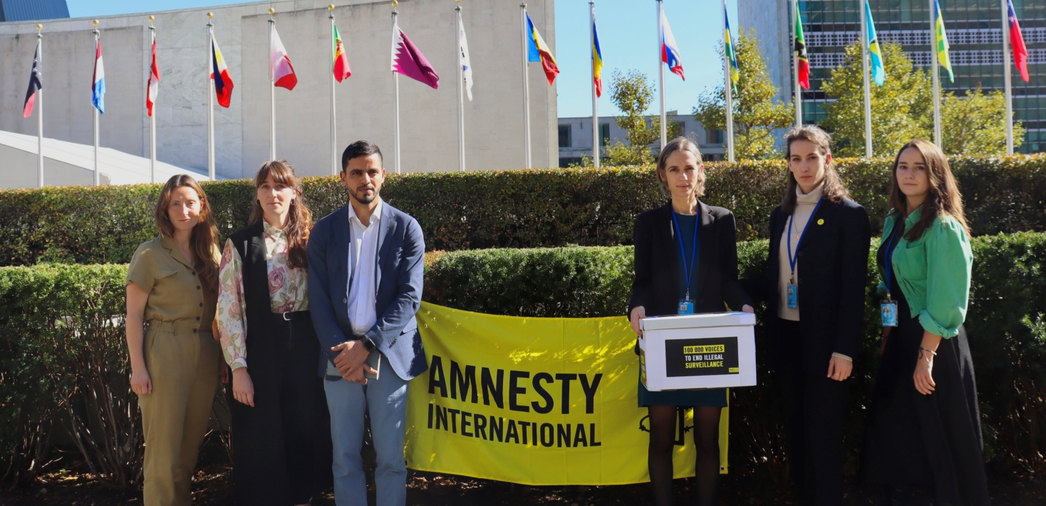 107 273 personnes de 180 pays et territoires ont signé la pétition d’Amnesty International demandant aux États membres de l’ONU d’appuyer un moratoire mondial sur les technologies de surveillance, jusqu’à ce que soit mis en place un cadre réglementaire adéquat qui protège les droits humains.