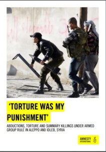 Rapport 4 juillet, 2016 « Torture was my punishment: Abductions, torture and summary killings under armed group rule in Aleppo and Idleb, Syria Rapport