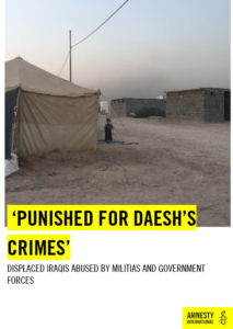 Rapport 17 octobre, 2016 Punished for Daesh’s crimes’: Displaced Iraqis abused by militias and government forces Rapport