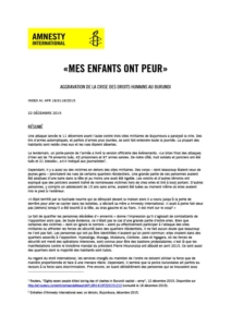 Rapport 21 décembre, 2015 « Mes enfants ont peur » Aggravation de la crise des droits humains au Burundi Rapport