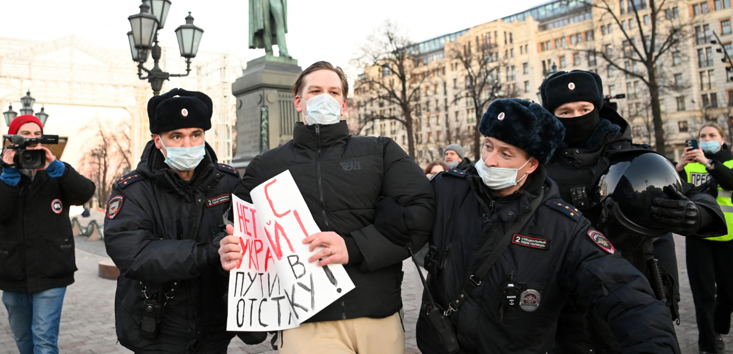 Au lendemain de l’invasion de l’Ukraine par la Russie, des milliers de manifestant.es qui dénonçaient la guerre ont été arrêtés de manière brutale et arbitraire par les autorités russes. Pour la seule journée du 6 mars 2022, 5 000 personnes ont été arrêtées dans 69 villes russes.