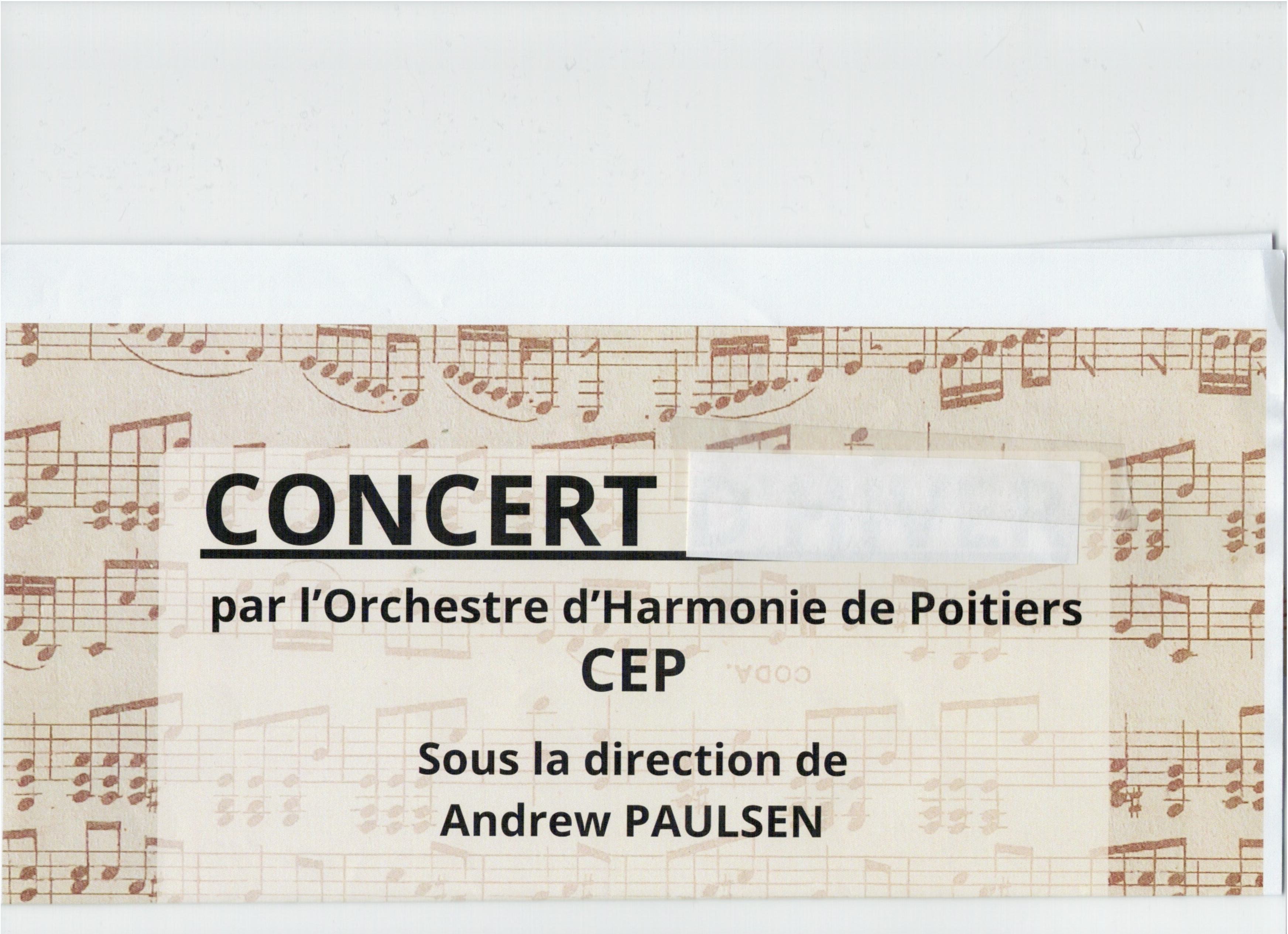Concert de l’ORCHESTRE de l’HARMONIE du CEP de Poitiers sous la direction de Andrew PAULSEN au bénéfice du groupe de local.