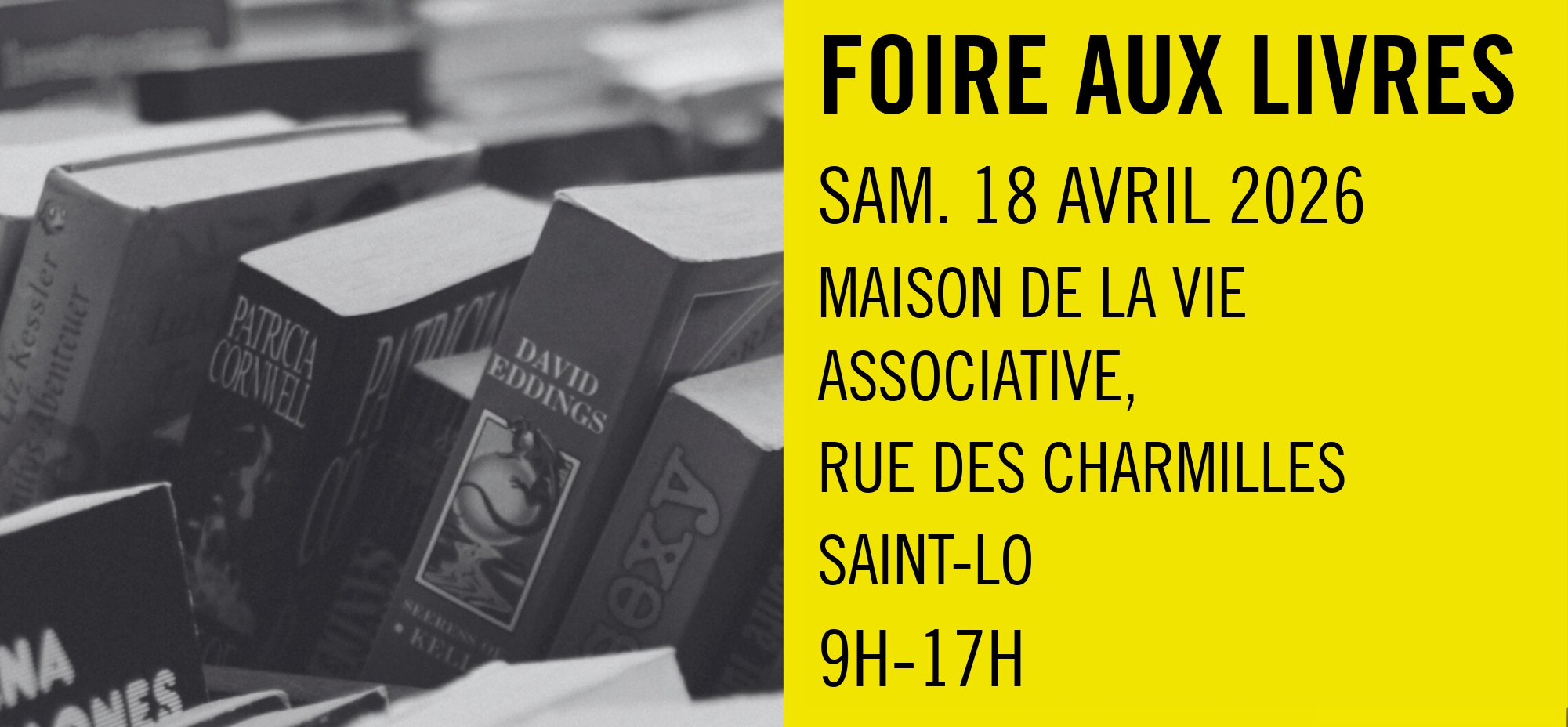 Foire aux livres de 9h à 17h à la Maison de la vie associative Calmette et Guérin, rue des Charmilles, 50000 Saint-Lô.
